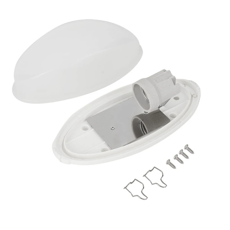 Изготовлен из высококачественного специального пластика, прочный и износостойкий.Классический дизайн, не нужен абажур, рекомендуется использовать лампу с резьбой менее 45 Вт и Е27.Эта лампа представляет собой взрывозащищенную, влагостойкую и противотуманную лампу, которую можно использовать в сауне, парной или ванной комнате.Замена лампы проста в эксплуатации, просто откройте защелки с обеих сторон крышки лампы.На колбе есть железные детали, которые могут увеличить отражение лампочки и увеличить яркость.Спецификация:Состояние: абсолютно новыйРезьба лампы: E27 (не входит в комплект)Рекомендуемая мощность лампы: менее 45 Вт (не входит в комплект)Цвет: белыйМатериал: пластикРазмер: 21x10x8 смПосылка1 x свет для сауны4 винтаВ комплект входит только указанное выше содержимое, другие продукты в комплект не входят.Примечание: светильник вая съемка и различные дисплеи могут привести к тому, что цвет товара на изображении будет немного отличаться от реального. Допустимая погрешность измерения +/- 1-3 см.