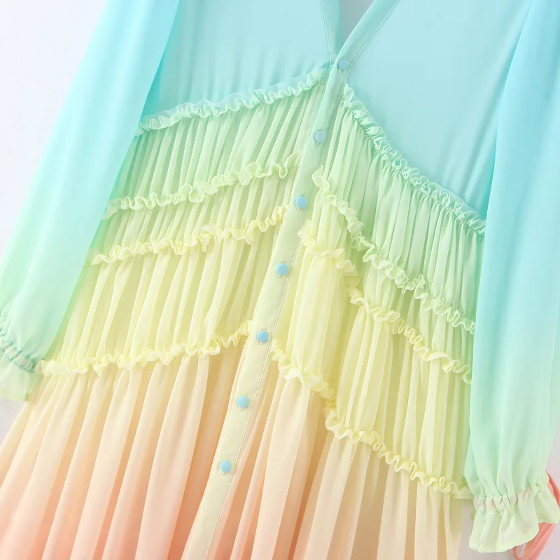 Летнее Макси-Платье Бохо С V-образным вырезом, пуговицами, кисточками и длинным рукавом
