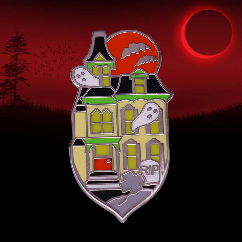 Кровавая луна призраков Ghouls привидениями Pin паранормальные Хэллоуин жуткий страх призрак здания брошь светится в темноте