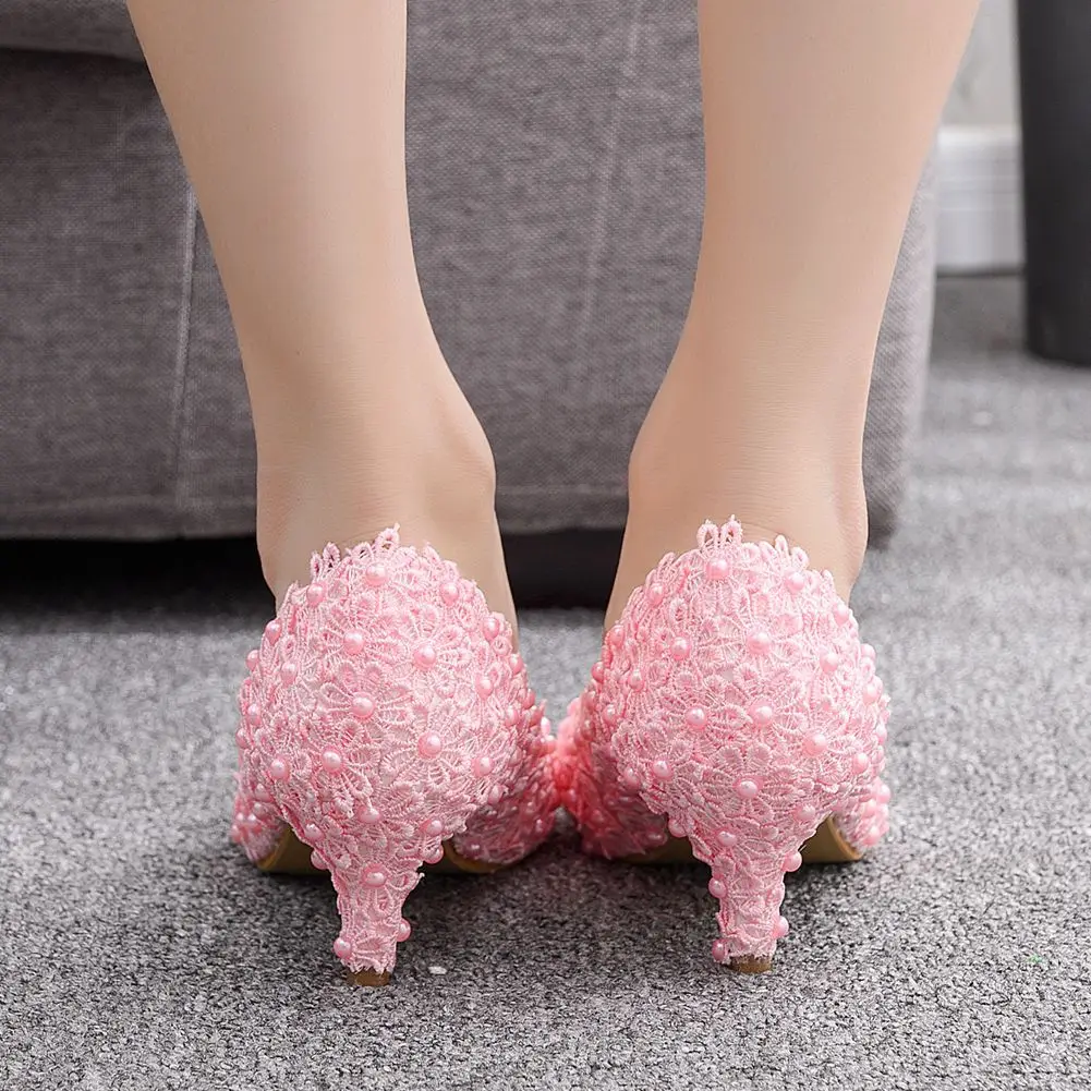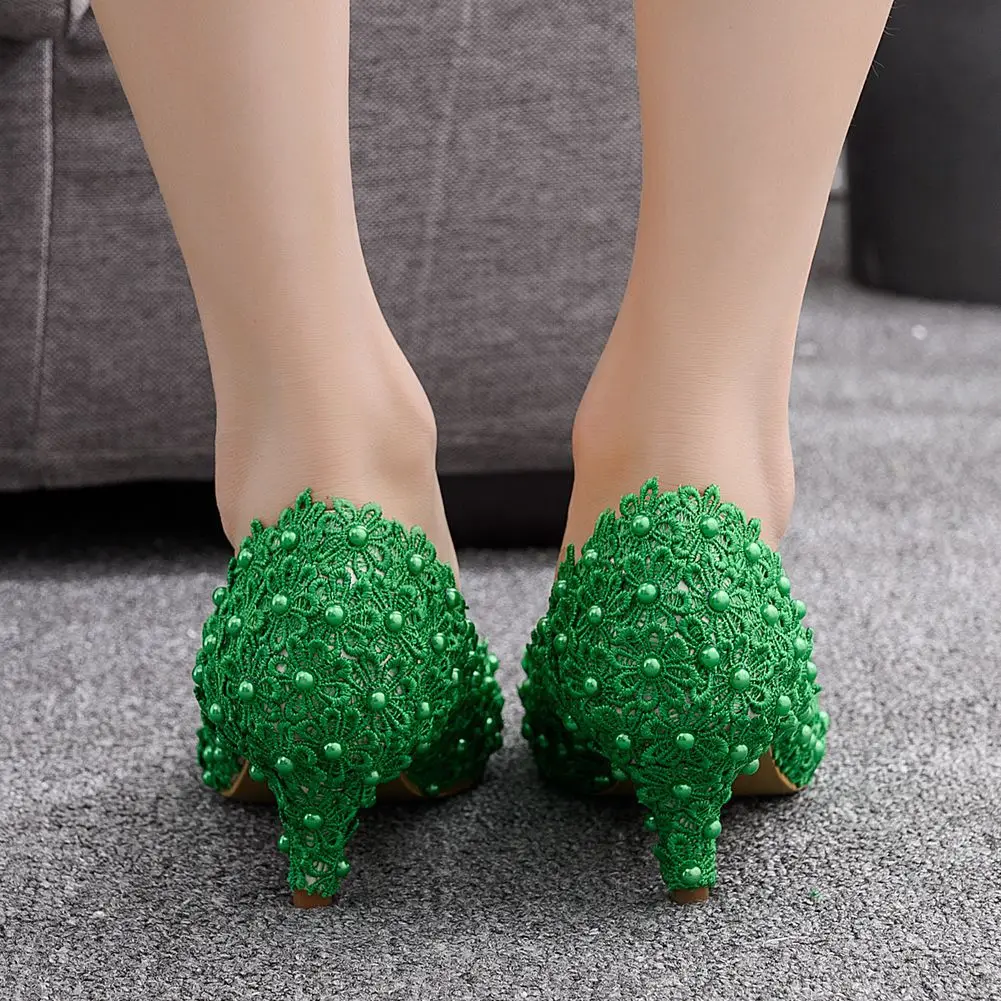 Туфли-лодочки женские на шпильке 5 см, заостренный носок, жемчуг, розовые, белые, зеленые, свадебные туфли для невесты, H0077