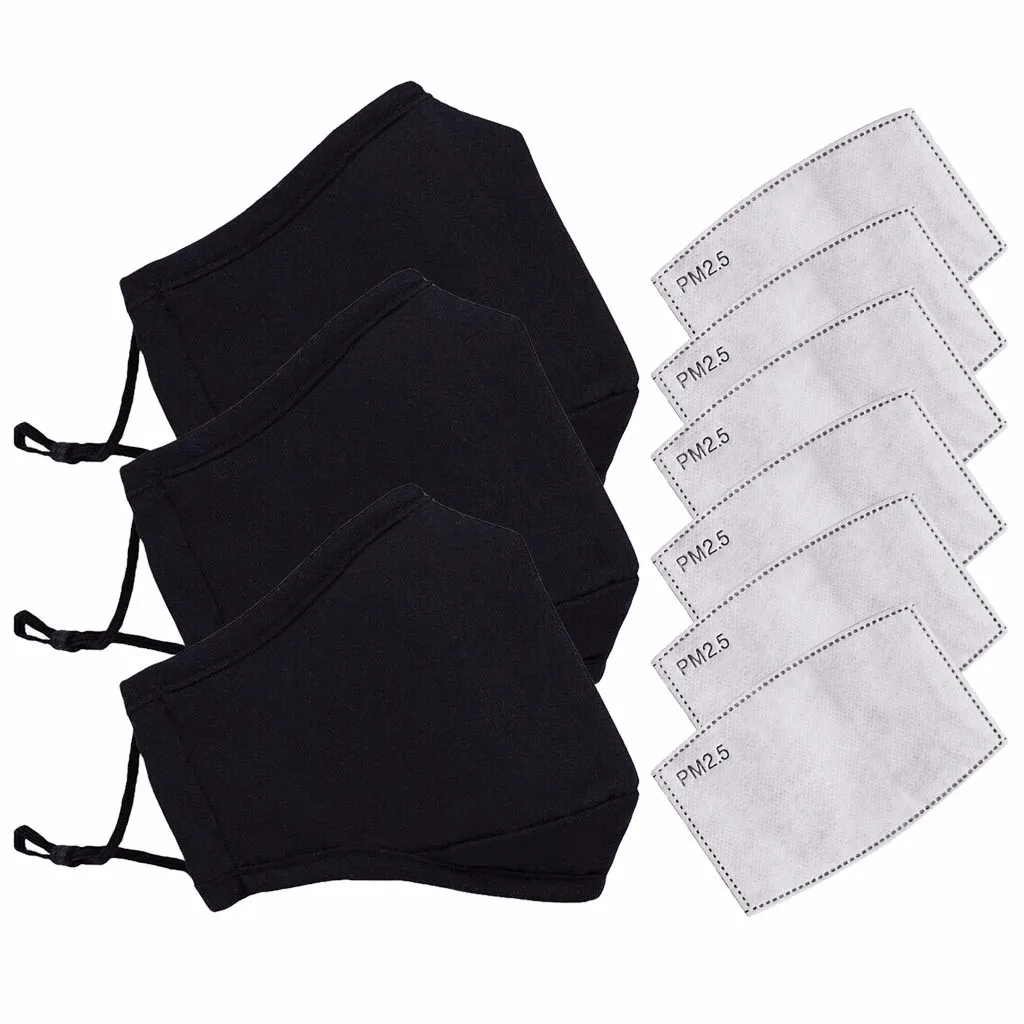 Комплект из 3 предметов, хлопковая черная маска Респиратор маска дл...
