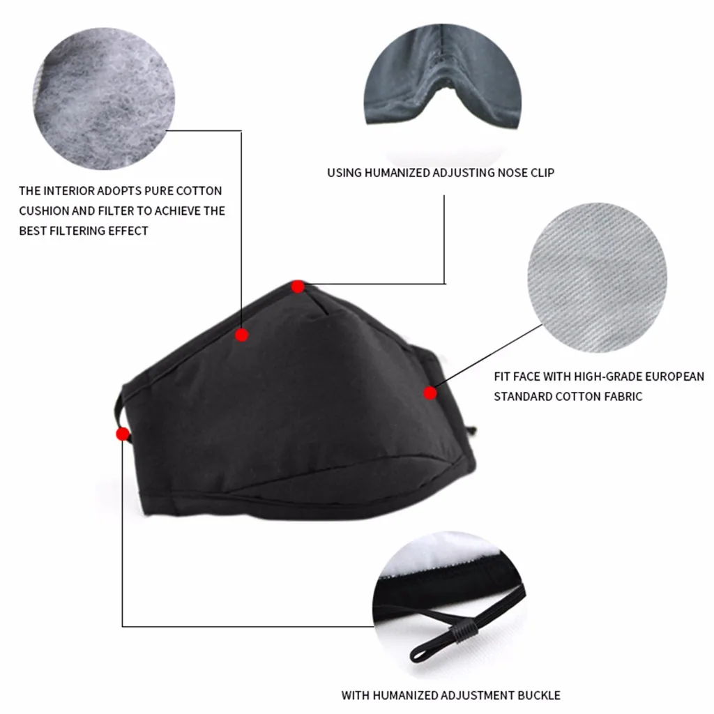 Хлопковая черная маска для лица с фильтром с активированным углем, ...