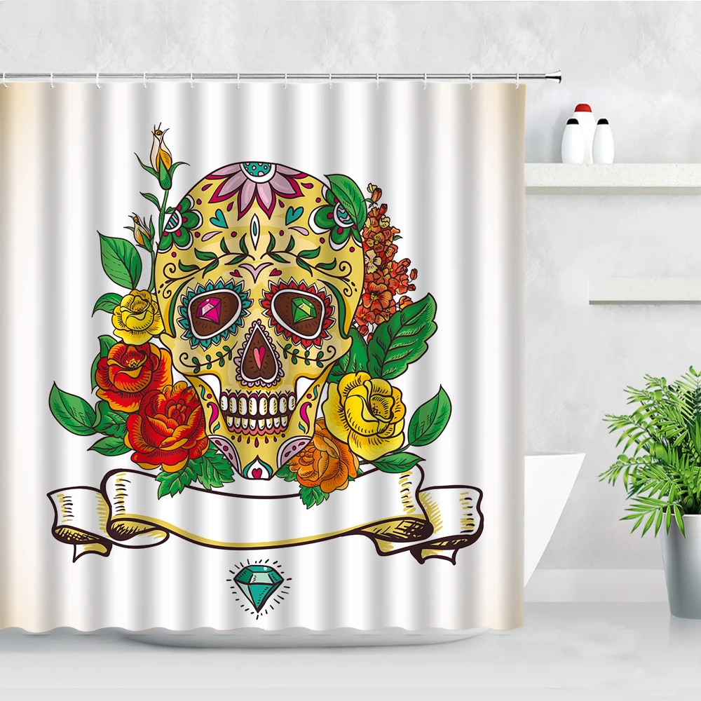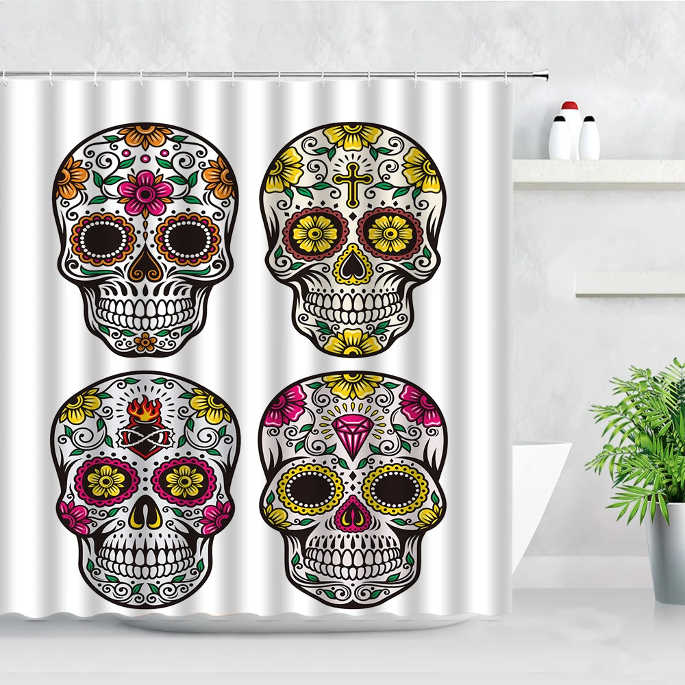 Хэллоуин занавеска для душа Красочный цветочный мексиканский Сахар ...