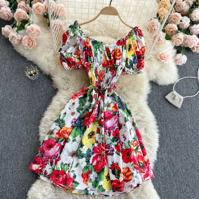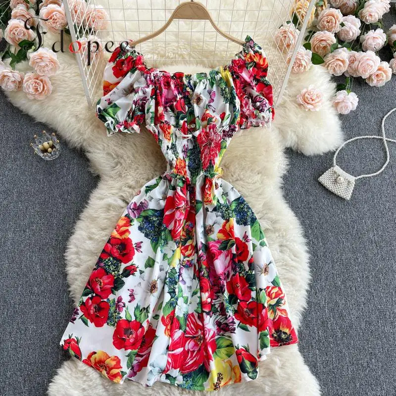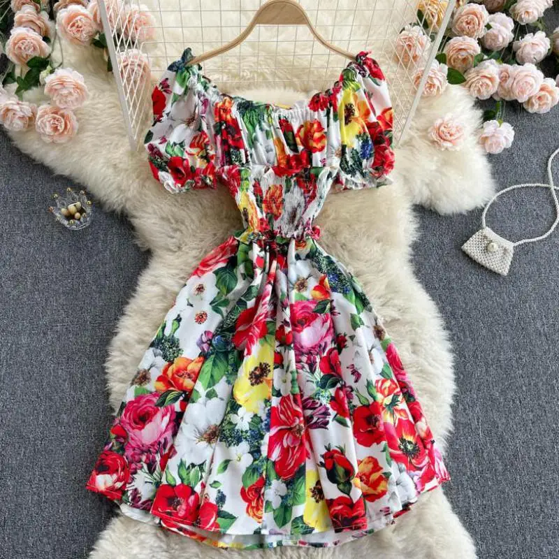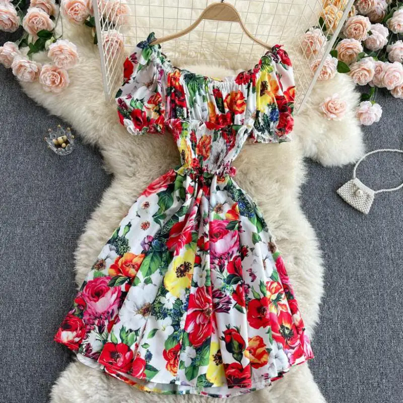 Платье женское летнее с открытыми плечами, модная уличная одежда с рукавами-фонариками, пляжный стиль, популярный цвет