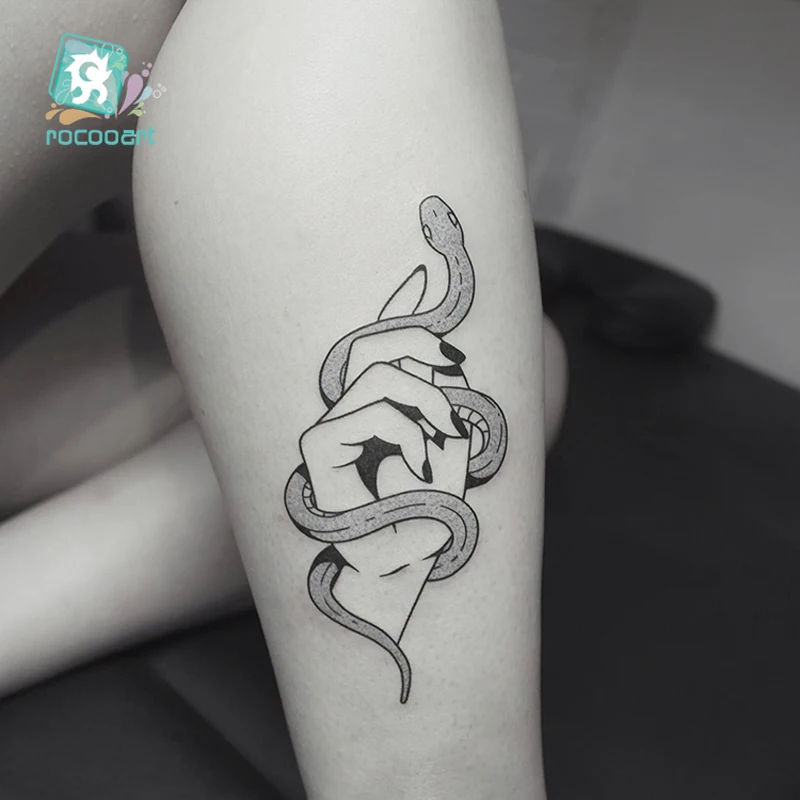 Rocooart Черная Змея Временные татуировки наклейки для женщин мужчин тело талии водонепроницаемый поддельные Татто темное вино змея Татто