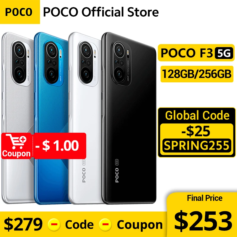 Смартфон глобальная версия POCO F3, 128 ГБ256 ГБ, Восьмиядерный процессор Snapdragon 870, NFC, экран 6,67 дюйма 120 Гц, E4 AMOLED, тройная камера 48 МП