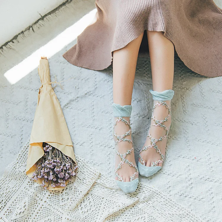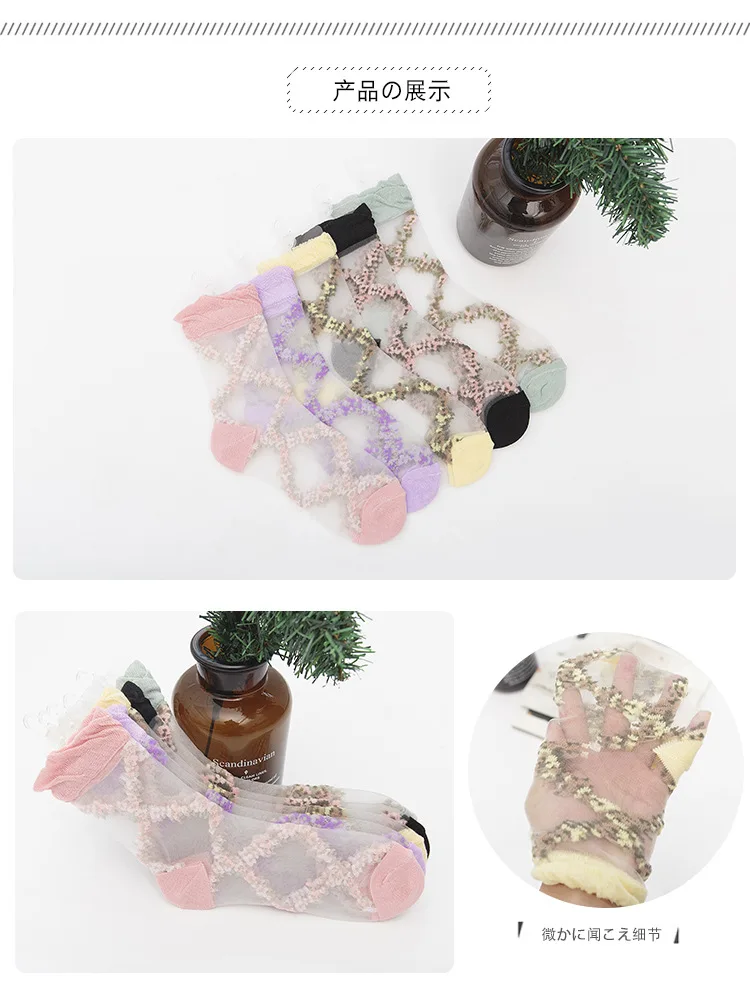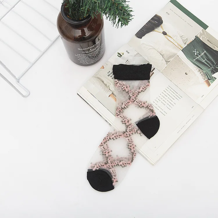 Носки женские кружевные в сеточку, тонкие прозрачные эластичные сет...