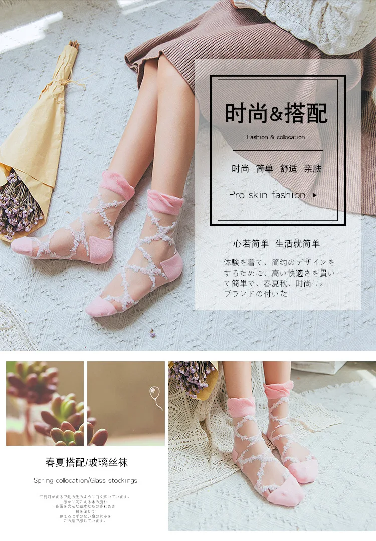 Новые стеклянные чулки на весну и лето, тонкие прозрачные женские чулки средней длины со стразами