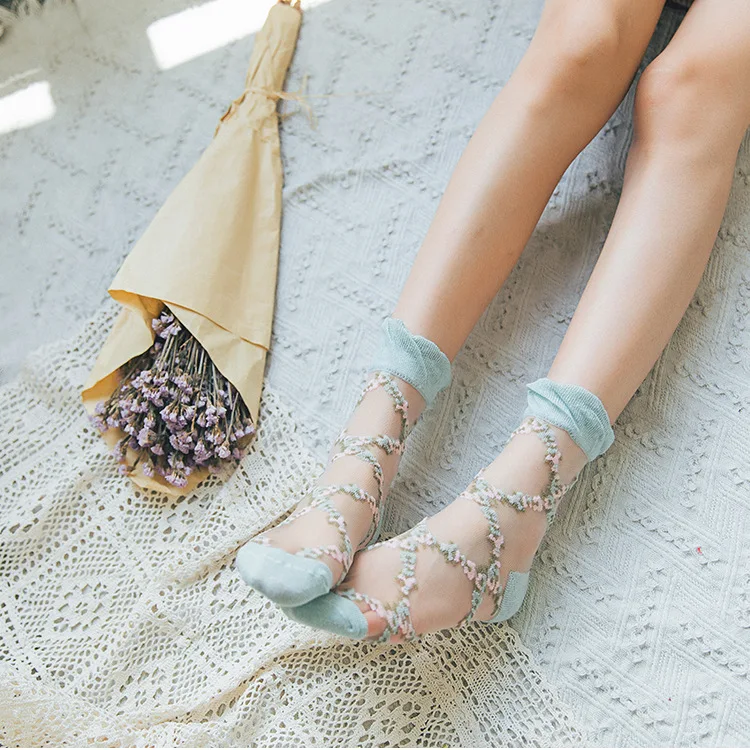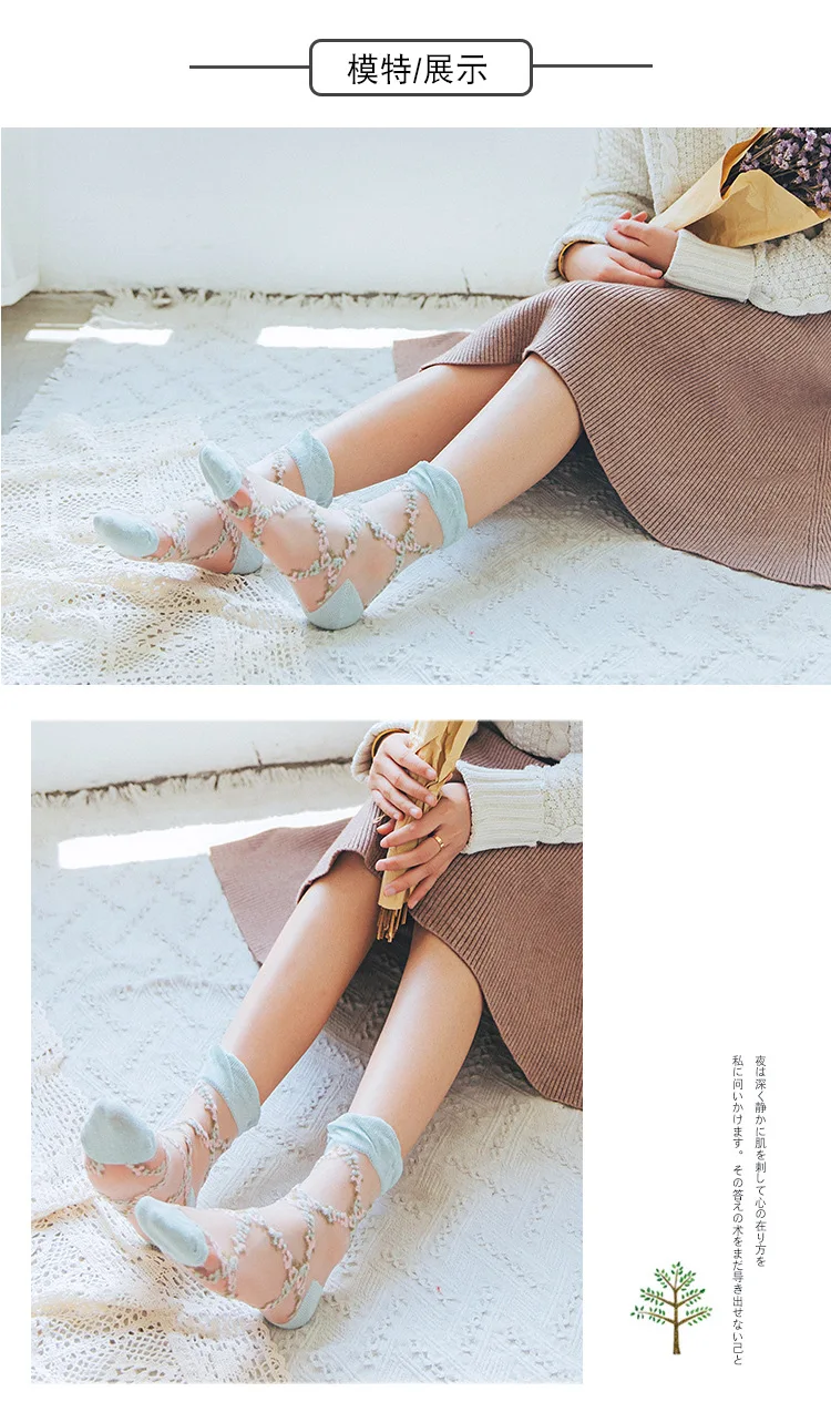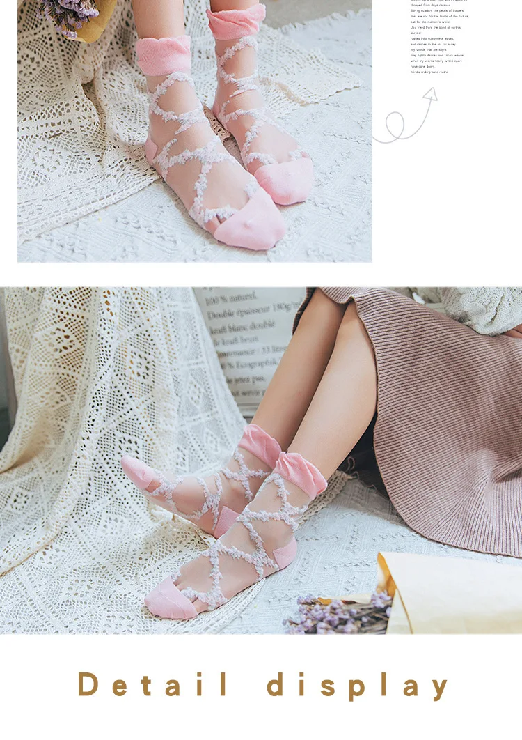 Женские ультратонкие носки до щиколотки, кружево, цветок, роза, эла...
