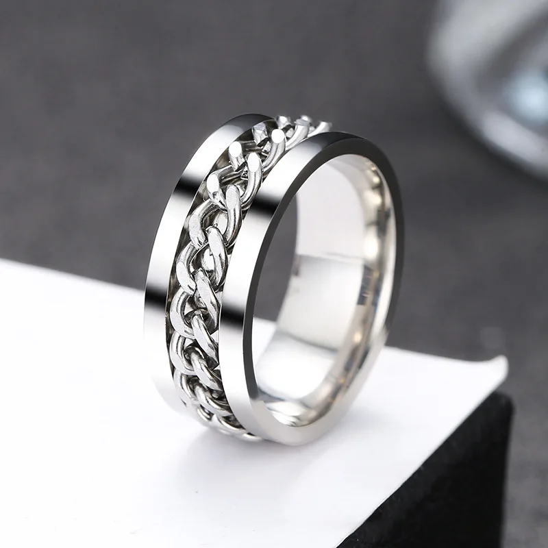 Титановое кольцо из нержавеющей стали, 5 цветов, вращающееся кольцо-цепочка, стиль панк индивидуальность, мужское кольцо, ювелирные украшения, вечерние, подарок