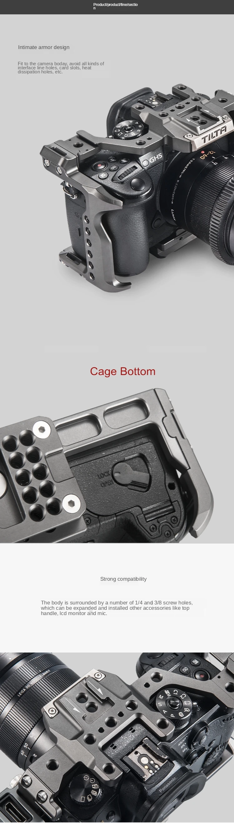 Этот чехол для камеры обеспечивает полную защиту для камер Panasonic GH4, GH5 и GH5S. Он обеспечивает несколько точек крепления 1/4-20 и 3/8-16, а также две точки крепления холодного башмака. Основание клетки также предоставляет несколько монтажных отверстий При креплении камеры к кардану, чтобы легче настроить баланс вашей установки.