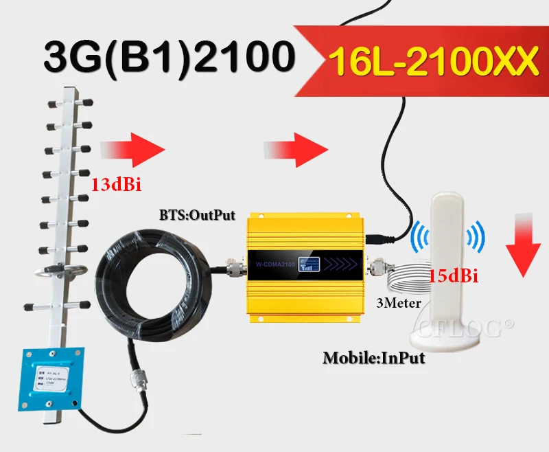 Что входит в комплект ----Только 2100 усилитель = Band1 2100 3G усилитель сигнала + источник питания;16L- 2100XX = WCDMA Band1 2100 МГц 3G усилитель сигнала + 13dBi антенна Yagi + 15dBi всенаправленная антенна + 10 м кабель + Питание;