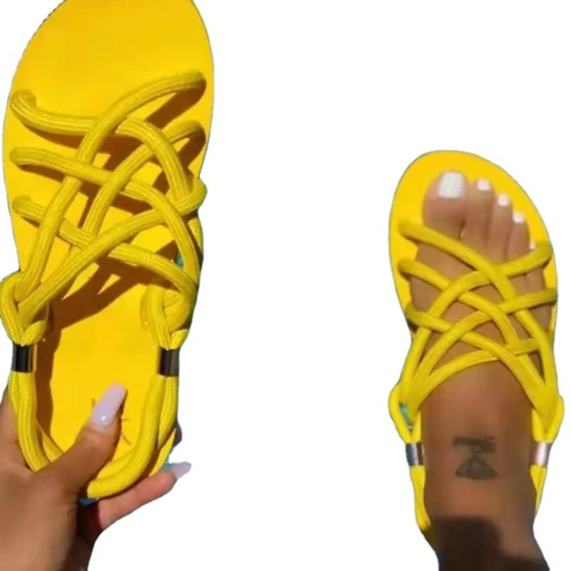 Сандалии женские, летние, плетеные, на плоской подошве, пляжные, с ...