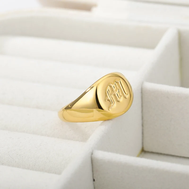 Старый английские буквы кольца для мужчин и женщин палец ювелирное изделие, кольца Размеры 8 Нержавеющаясталь с инициалами насквозь круглая вершина штамп кольца