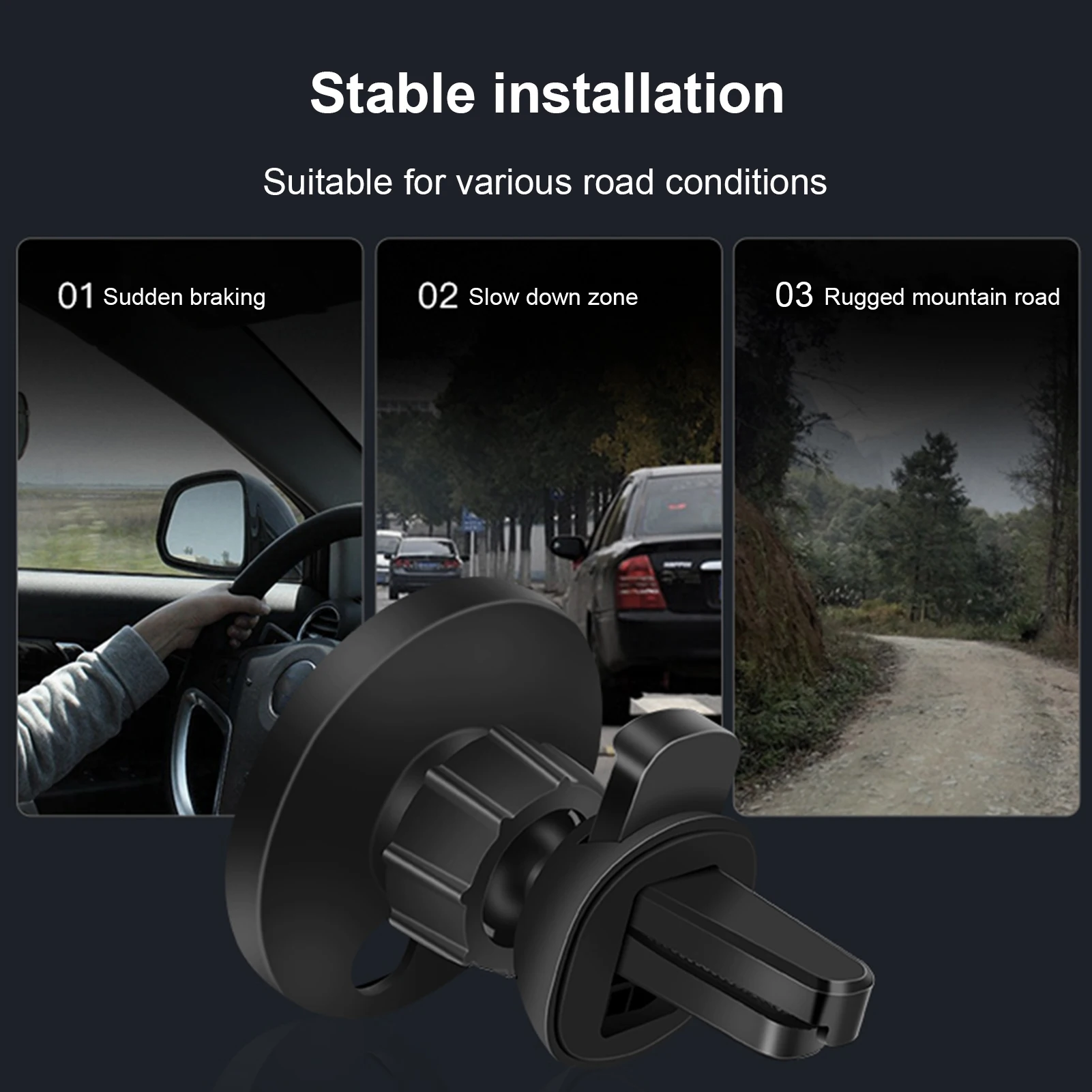Особенности:1. Отличная совместимость: держатель вентиляционного отверстия предназначен для беспроводного зарядного устройства MagSafe. Он может помочь безопасно и быстро зарядить ваше устройство для iPhone 12 во время вождения (обратите внимание, что это просто Держатель зарядного устройства, но не зарядное устройство).2. Впечатляющее Качество: Изготовлен из высококачественного АБС-пластика, прочный и долговечный.3. Вращающееся Основание: вращающееся на 360 градусов основание этого держателя зарядного устройства можно устанавливать свободно и стабильно в разных положениях в автомобиле, чтобы обеспечить безопасность навигации и вождения, тем самым удовлетворяя различные потребности.4. Простая установка: мягкий и прочный силиконовый материал не повредит устройство для беспроводного зарядного устройства MagSafe, он стабилен в установке и легко разбирается.5. Универсальная совместимость: подходит для вентиляционных отверстий различных моделей.Особенности:Тип изделия: Держатель зарядного устройства для вентиляционного отверстияСовместимые продукты: совместимы с беспроводным зарядным устройством MagsafeМатериал: ABSЦвет: черныйКомплектация: