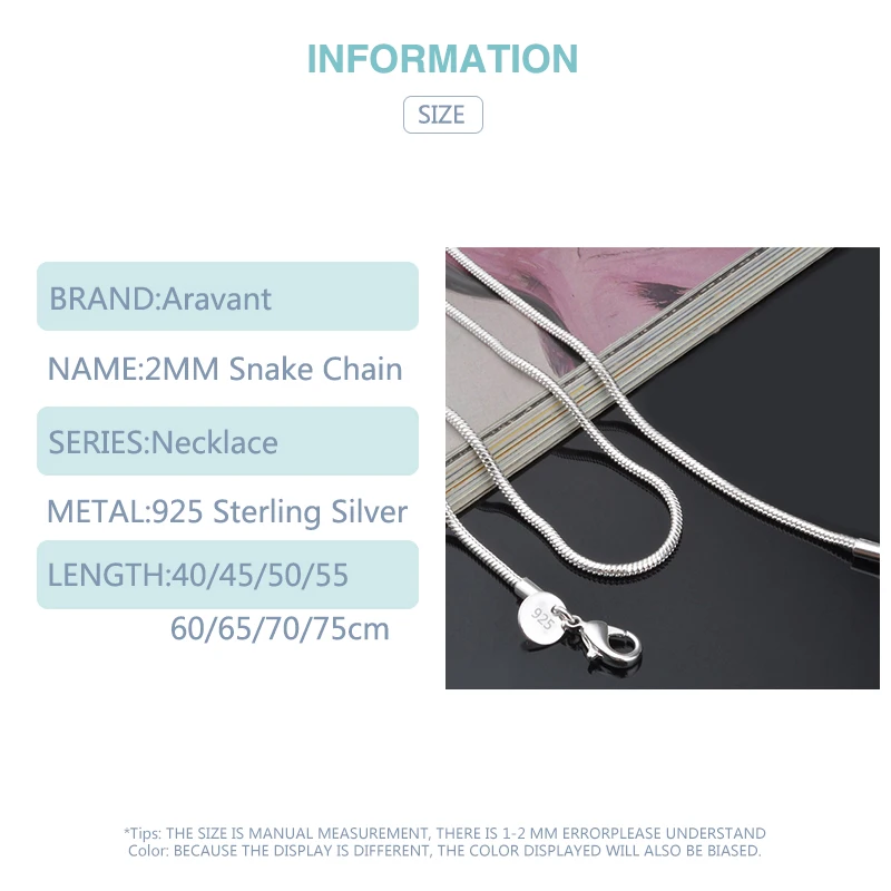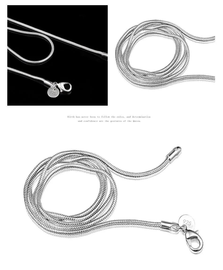 925 серебро 2 мм змея цепочка на шею для мужчин женщин модные ювелирные изделия подарки