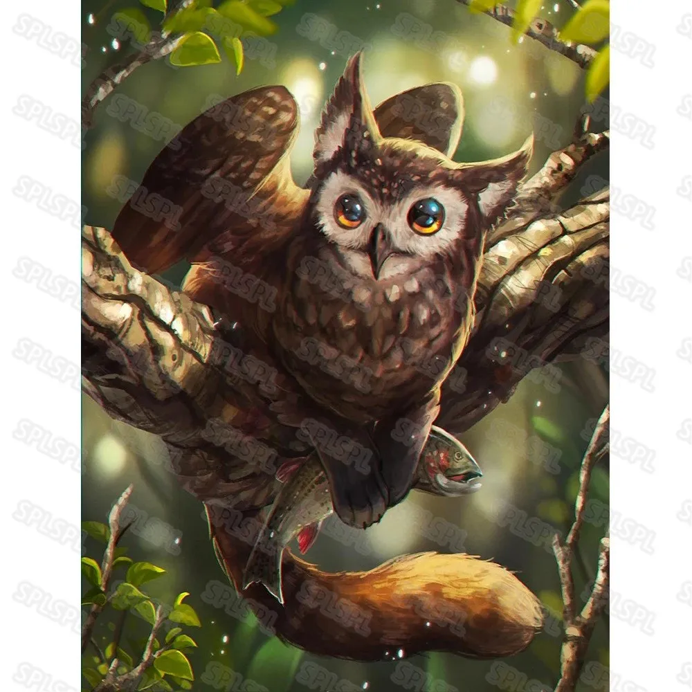 Алмазная живопись, животное, белая сова, квадратные алмазы, круглые...