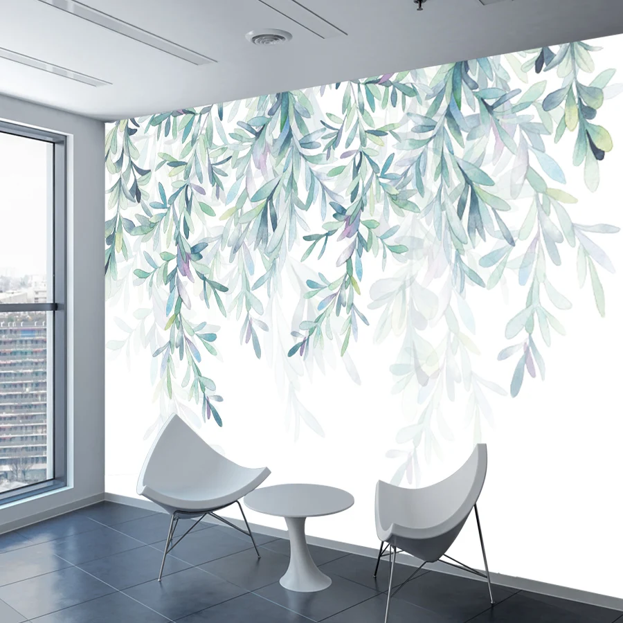 Современная 3d настенная бумага, домашний декор, бумажные фрески, простая настенная бумага для гостиной, спальни, с зелеными листьями, рулоны для снятия и наклеивания