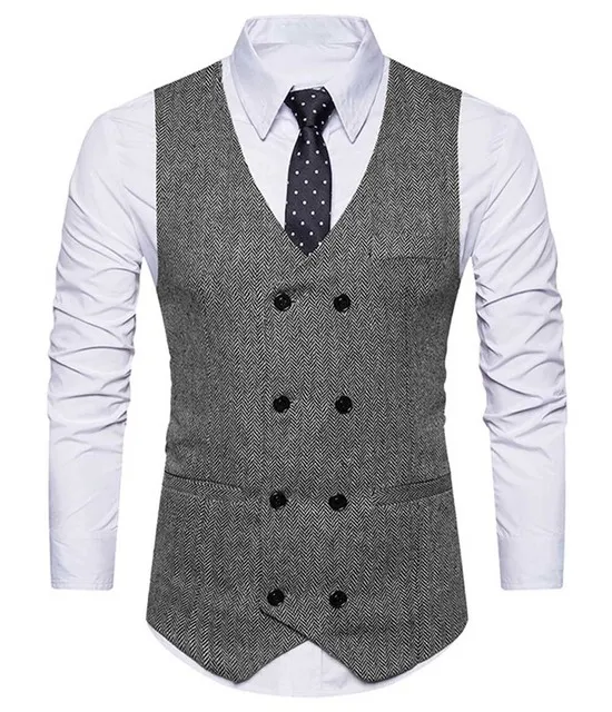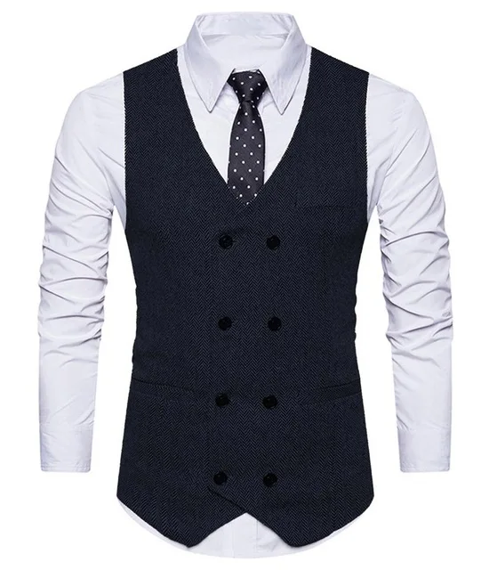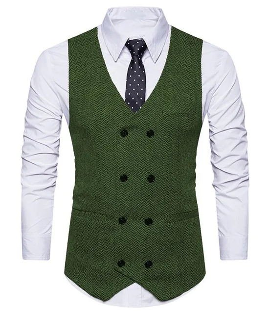 Мужской костюм жилет зеленый коричневый двубортный с V-образным вырезом в елочку приталенный силуэт формальный жилет для делового костюма шафера для свадьбы жилет