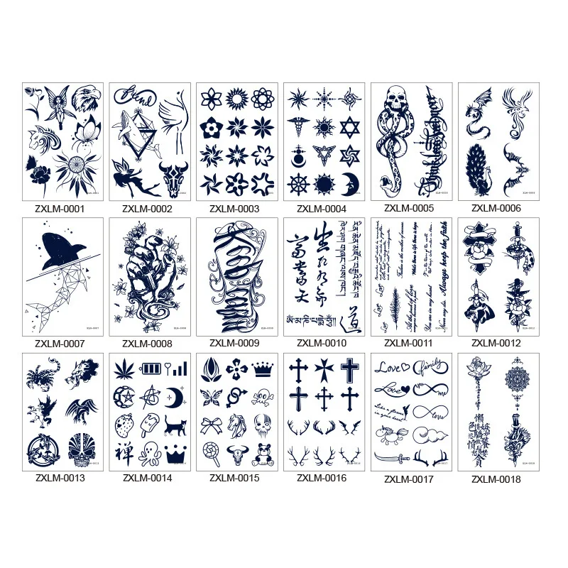 Примечание: Размер одного предмета 11x16 см Руководство пользователя:1. Вырежьте татуировку на выбор и удалите прозрачный лист.2. Нанесите татуировку на кожу.3. Намочите татуировку губкой.4. Через 20-30 секунд Аккуратно удалите подложку.5. Позвольте татуировке высохнуть. Для удаления:1. Татуировка мазком с натиранием алкоголя или детского масла.2. Подождите 10 секунд.3. Затем аккуратно и повторно протирайте спиртом или маслом ребенка, пока не переместите.