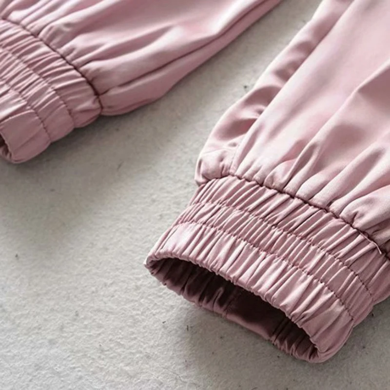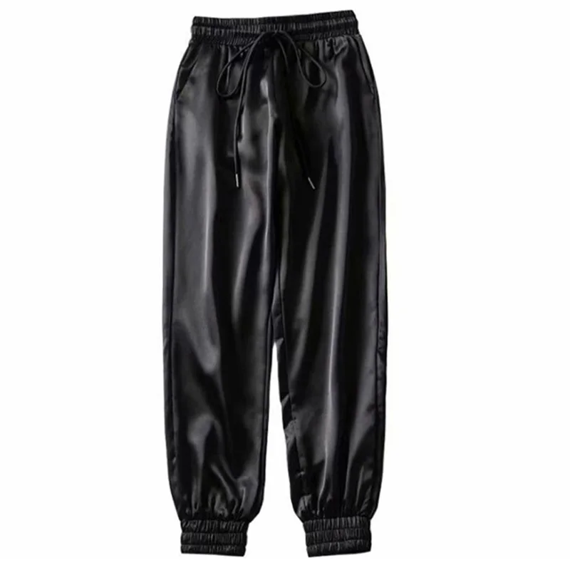 Брюки GAOKE, зеленые атласные брюки, женские брюки на шнуровке, Свободные повседневные брюки для бега, спортивные брюки Капри