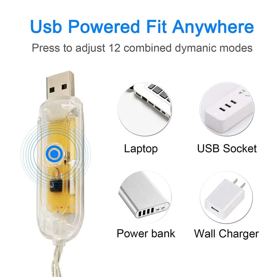 Таймер: 4 часа, 8 часов включения, затем выключения.Источник питания: 5 В USB с переключателем режимовПульт дистанционного управления: питание от аккумулятора CR2025(Не входит в комплект)Пульт дистанционного управления Рабочий диапазон: до 3,6 M/12 футов (убедитесь в том, что точки удаленного доступа к USB)