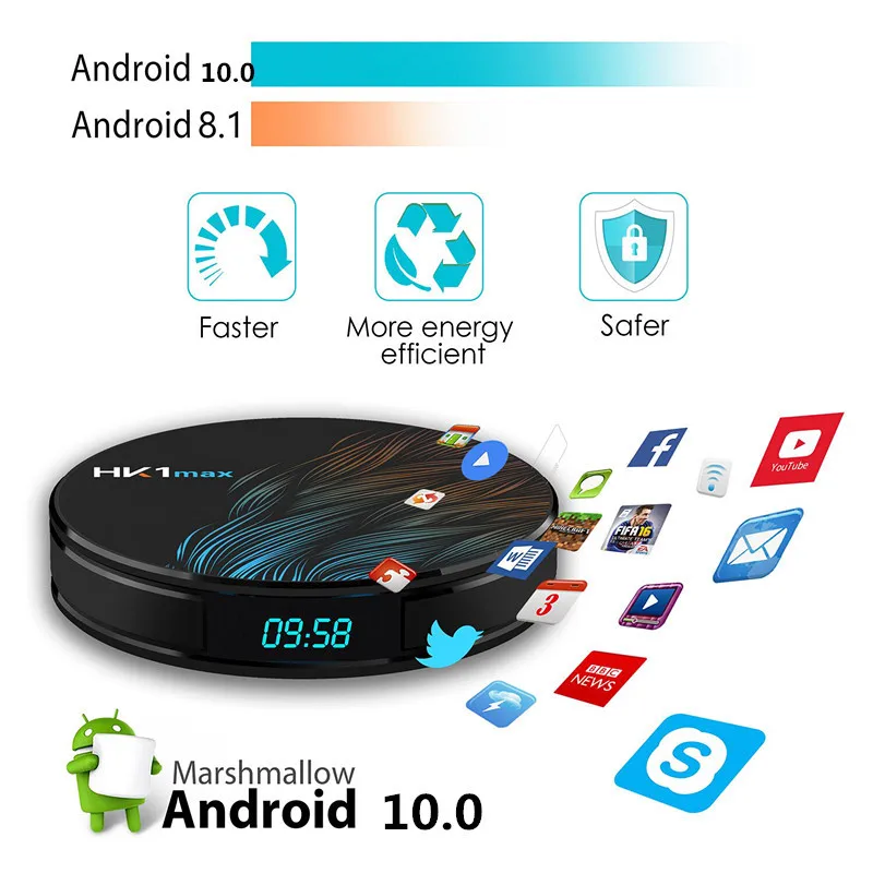 Приставка Смарт-ТВ HK1MAX, Android 10,0, Wi-Fi, 4 ядра, 2 + 4 Гб