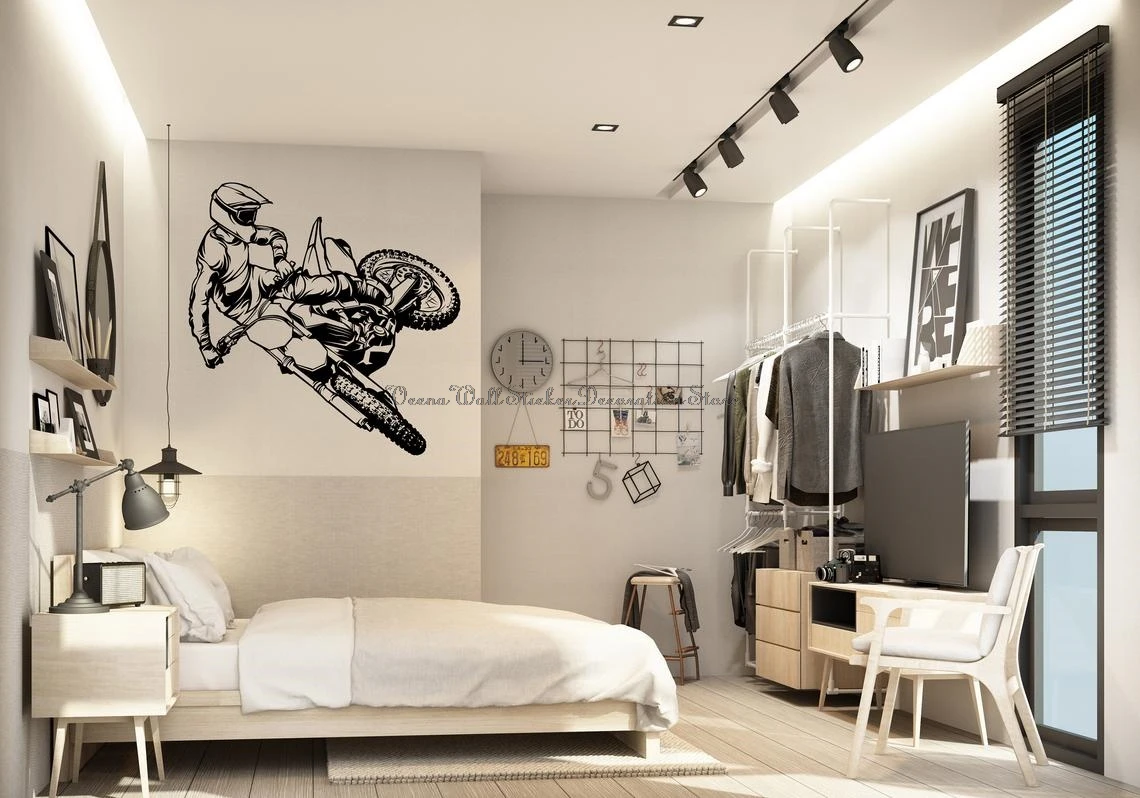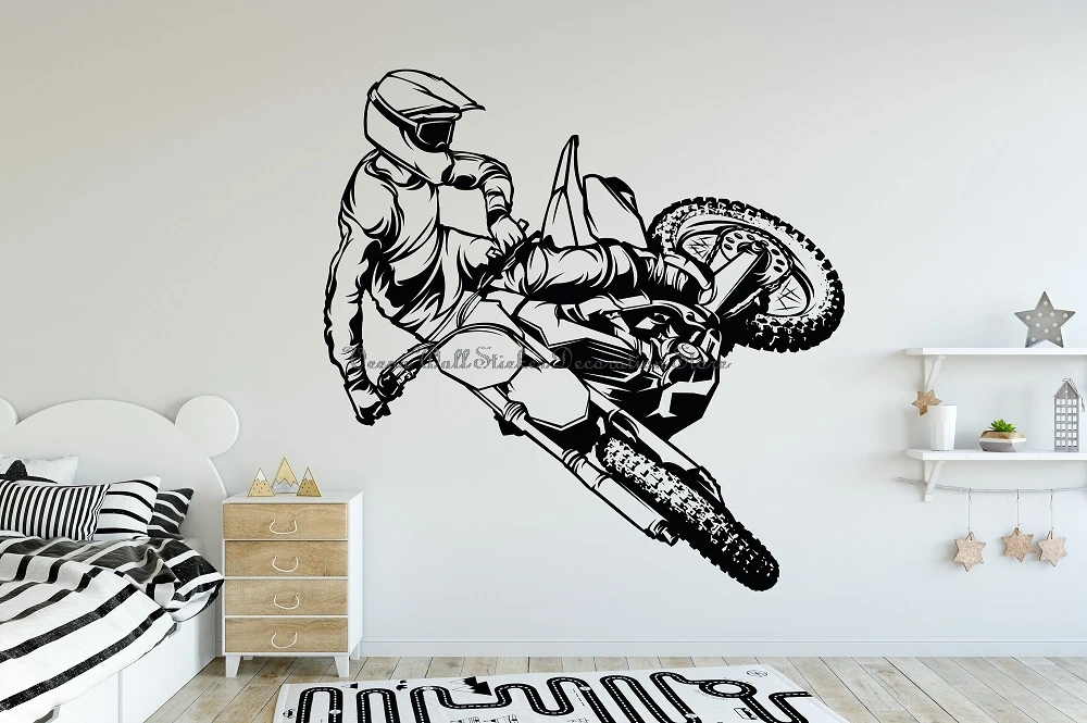 Мотоциклетная Наклейка на стену гоночный велосипед виниловая наклейка Мотокросс для дома мальчика комнаты подростков офиса дверей и окон художественная декорация роспись подарки