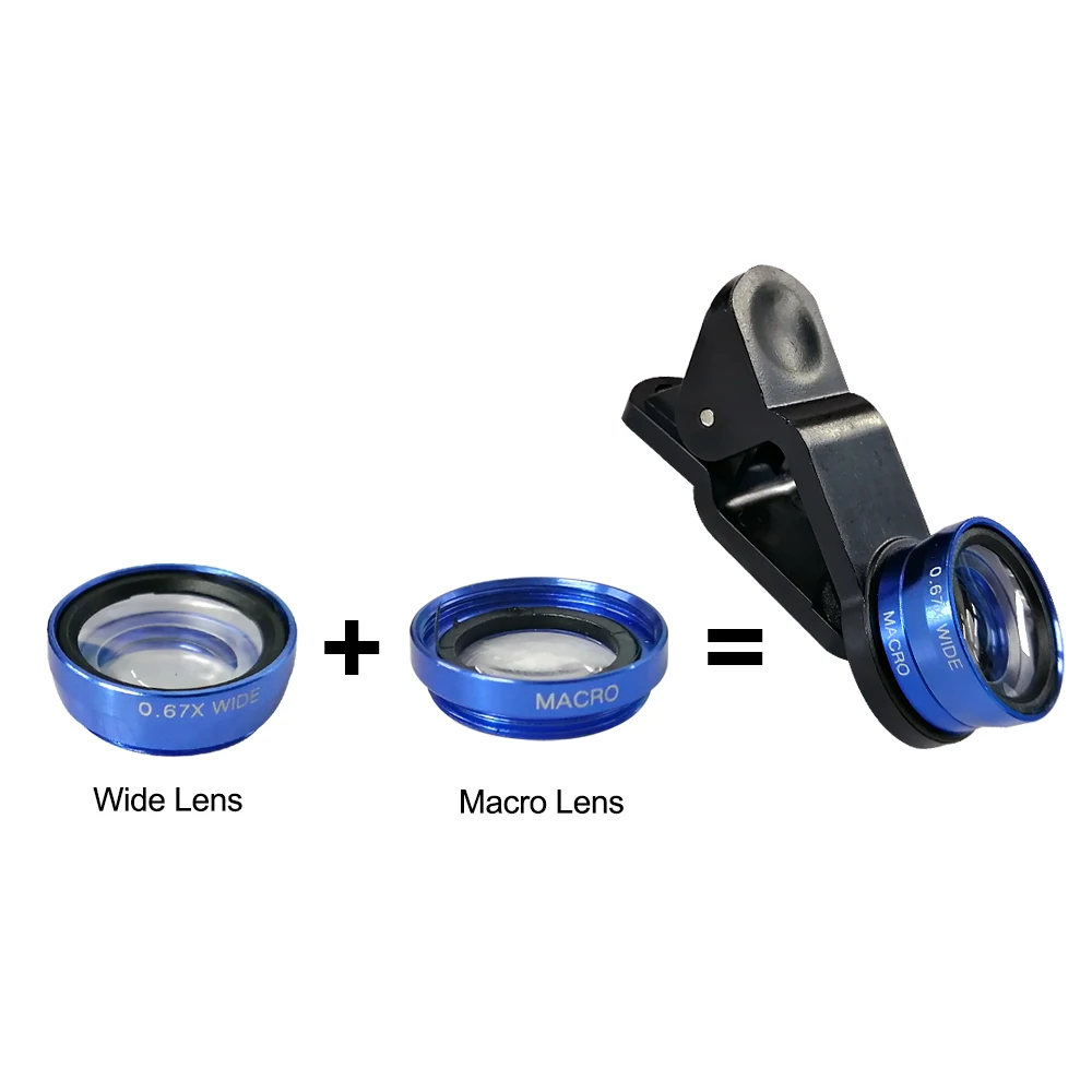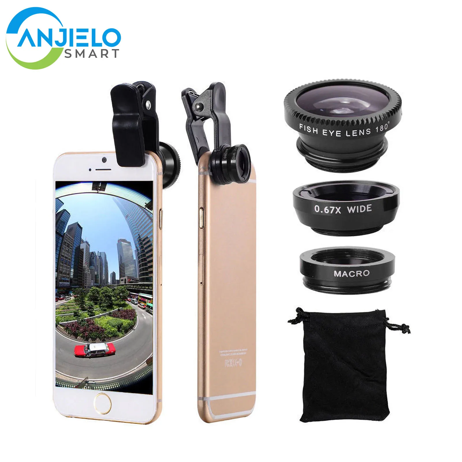 Универсальный комплект объективов для камеры сотового телефона 3 в 1, широкоугольный макрообъектив рыбий глаз для смартфонов Iphone, подставка для фотофона