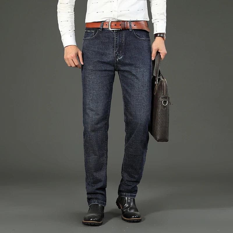Джинсы мужские прямые стрейчевые, классические брюки из денима, дел...
