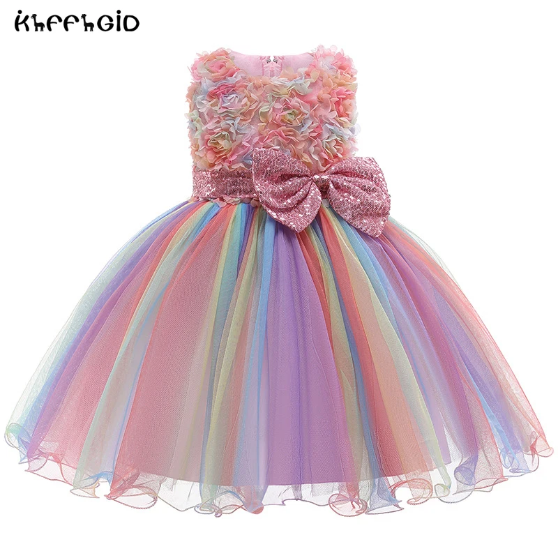 Детское свадебное платье, Сетчатое платье с галстуком-бабочкой, 2021 цветочным рисунком, вечернее платье для дня рождения, детское платье