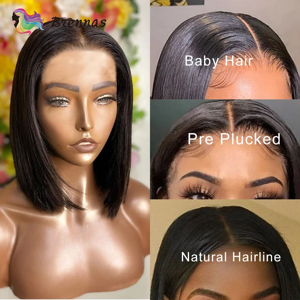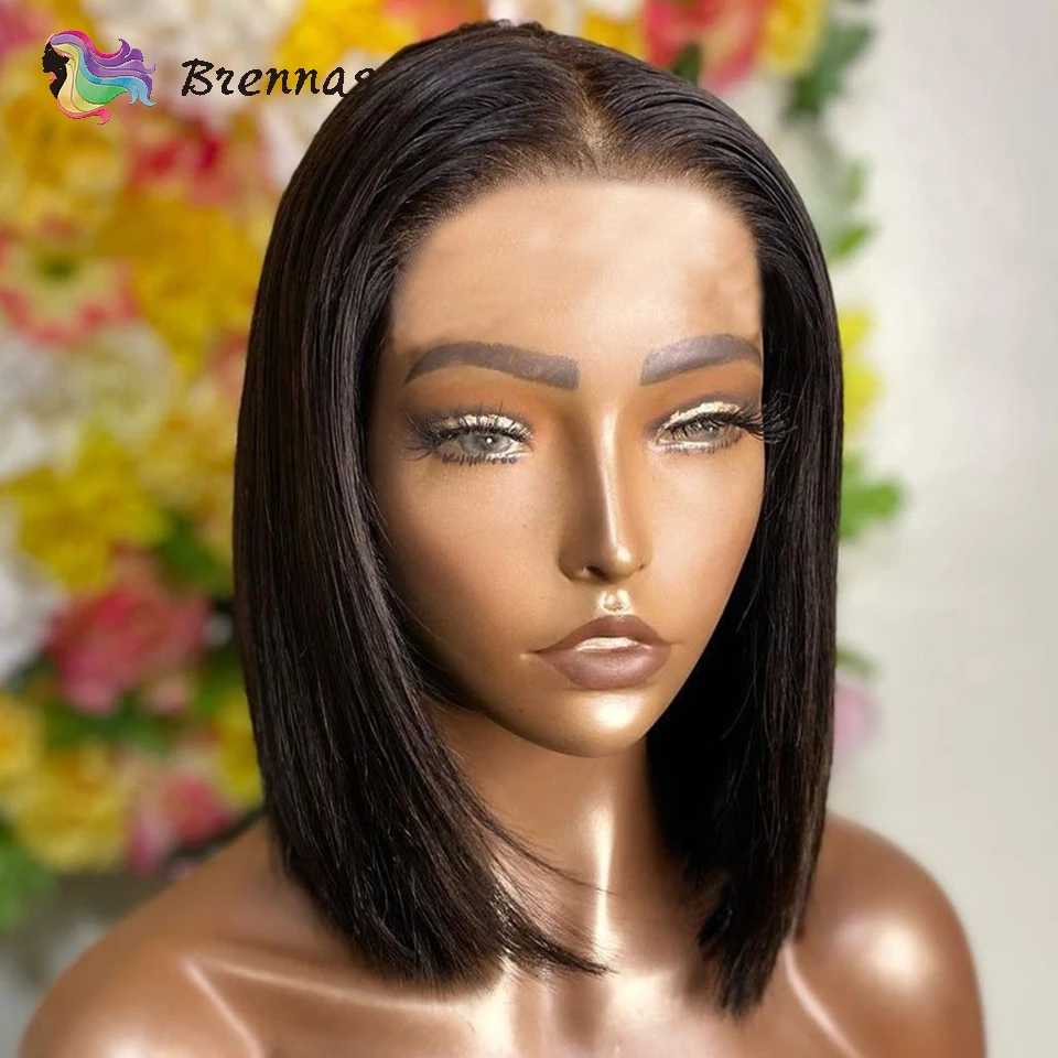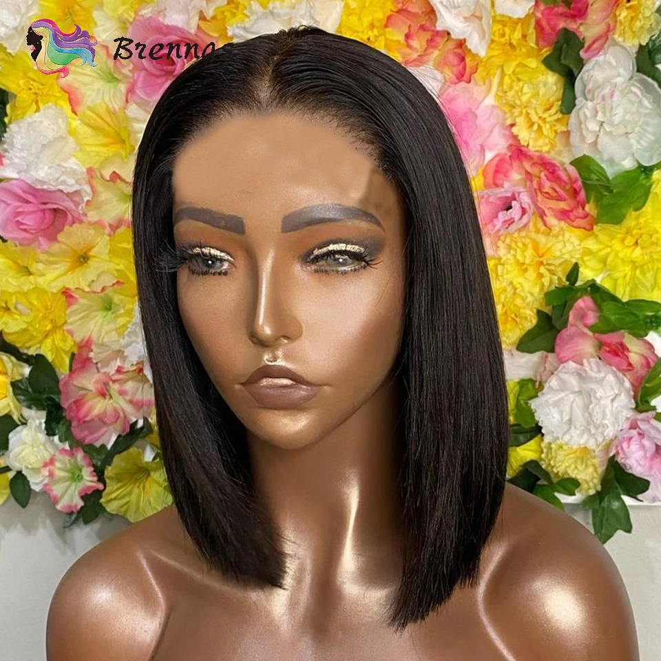 Натуральный Цвет шелковые прямые 4x4 кружево парики из натуральных волос на кружевной 13x4 Синтетические волосы на кружеве парик бразильский Реми волосы 4X4 закрытие парик шнурка предварительно вырезанные