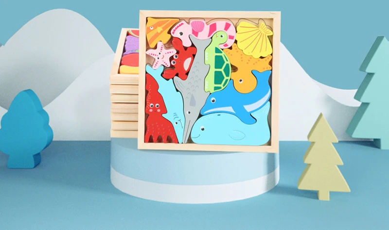 Деревянный мультяшный животный 3D пазл Монтессори когнитивные соответствия штабелирование баланс игра Обучающие игрушки подарок для детей