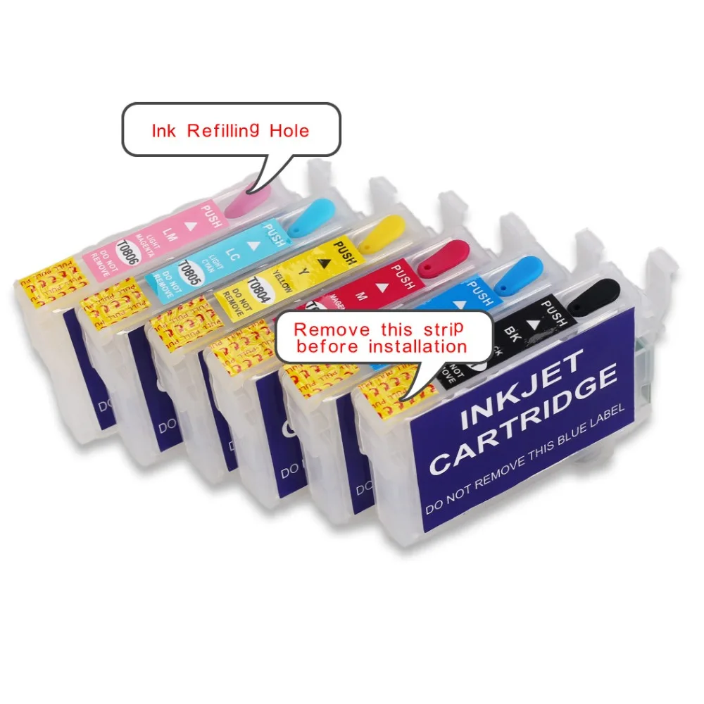 6 видов цветов T0791 T0796 перезаправляемый картридж с чипом для Epson Stylus Photo 1400 PX700W PX800FW P50 PX830FWD 1500W принтеры