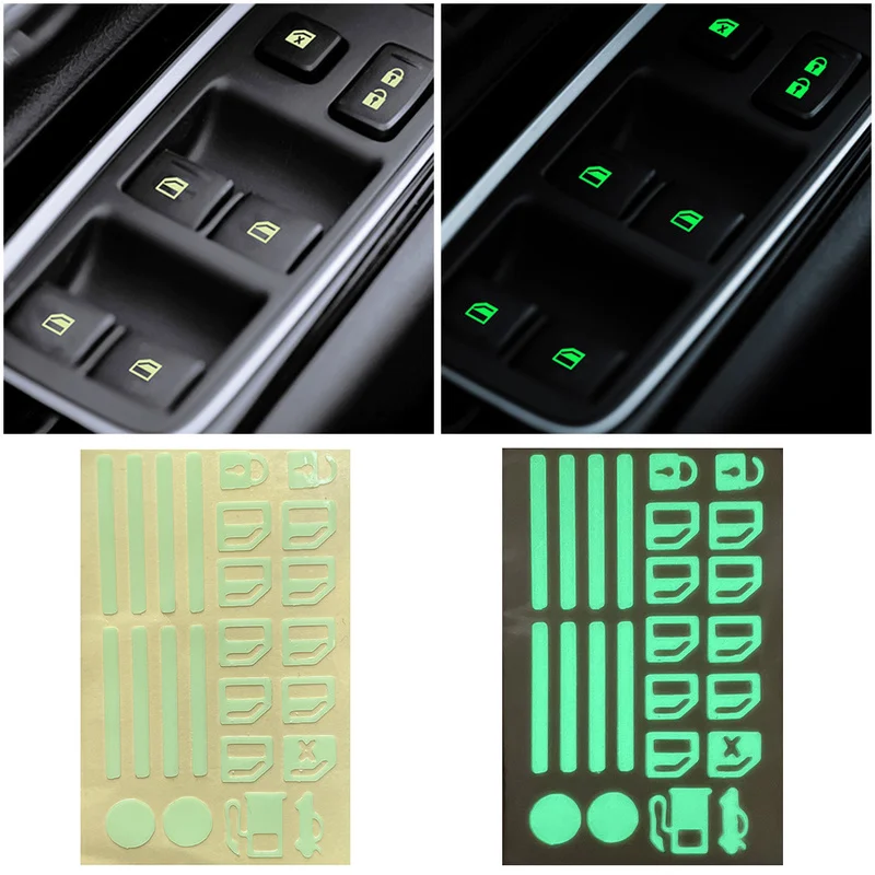 Универсальные флуоресцентные наклейки на кнопки окна автомобиля, Набор наклеек для внутренней отделки, декоративные аксессуары