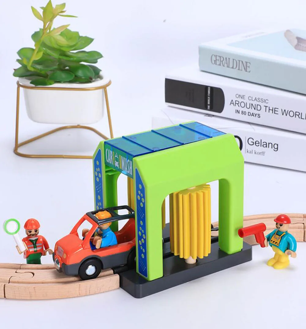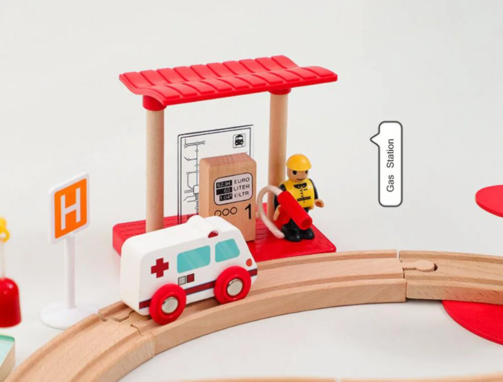 Детали деревянной железнодорожной станции, автомобильные игрушки, подходят для всех брендов, гоночные треки, обучающие игрушки