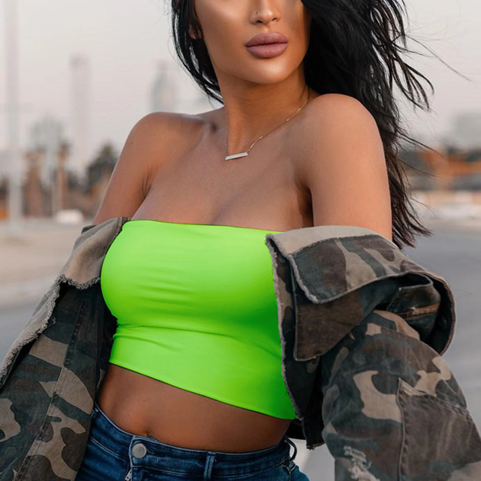 Кроп-топ женский без бретелек, пикантная яркая однотонная эластичная майка-бандо, оранжевый черный зеленый цвет