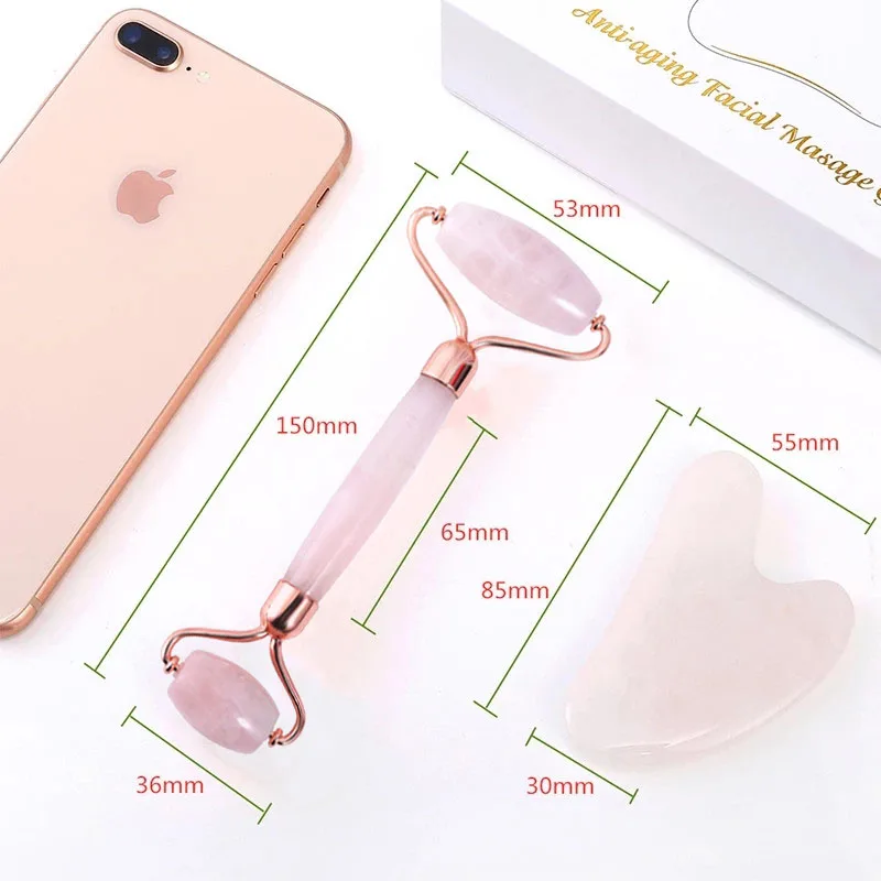 Роликовый массажер с розовым кварцем, натуральный порошок, Хрустальный массажер для лица, микроигла, Нефритовый шпатель, инструмент для ухода за кожей лица