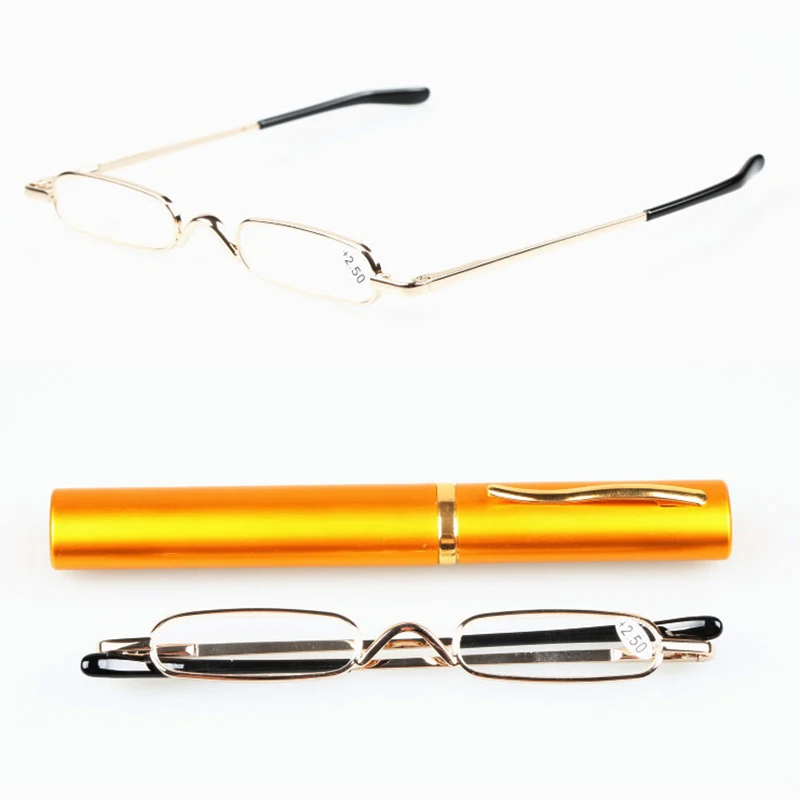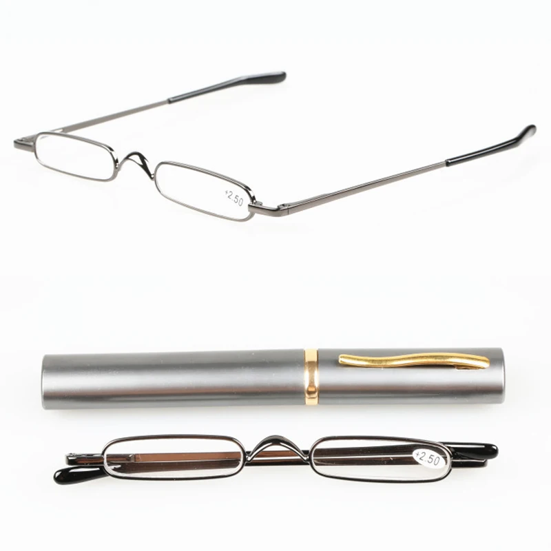 Очки для чтения унисекс, портативная мини-ручка в трубке, прозрачные пресбиопические очки с диоптриями + 1,5 2,0 2,5, полностью оправа, металлический чехол