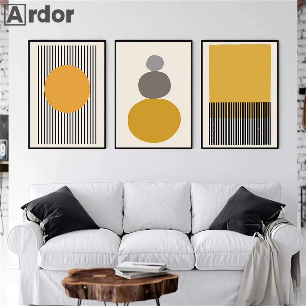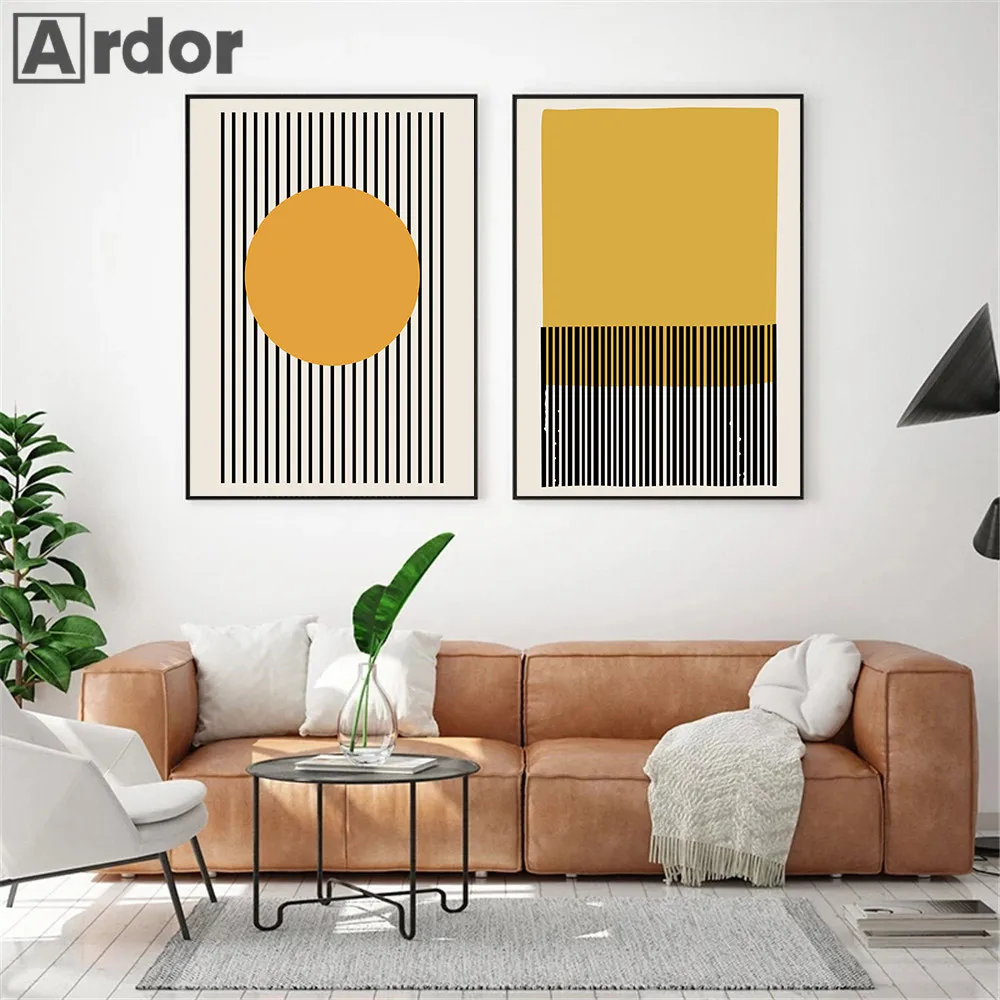 Минималистичная Настенная картина в полоску, абстрактный постер горчичного цвета на холсте, геометрические настенные картины, декор для гостиной