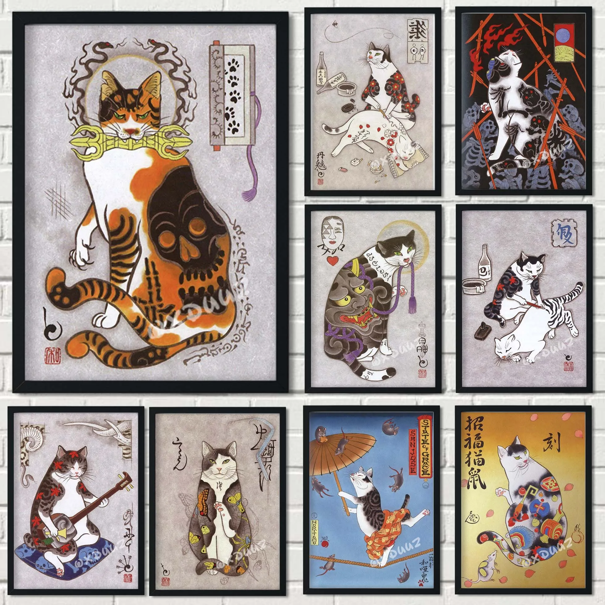 DIY алмазная живопись японский самурай тату Кот полная вышивка крестом кристалл искусство мозаика Алмазная вышивка домашний декор