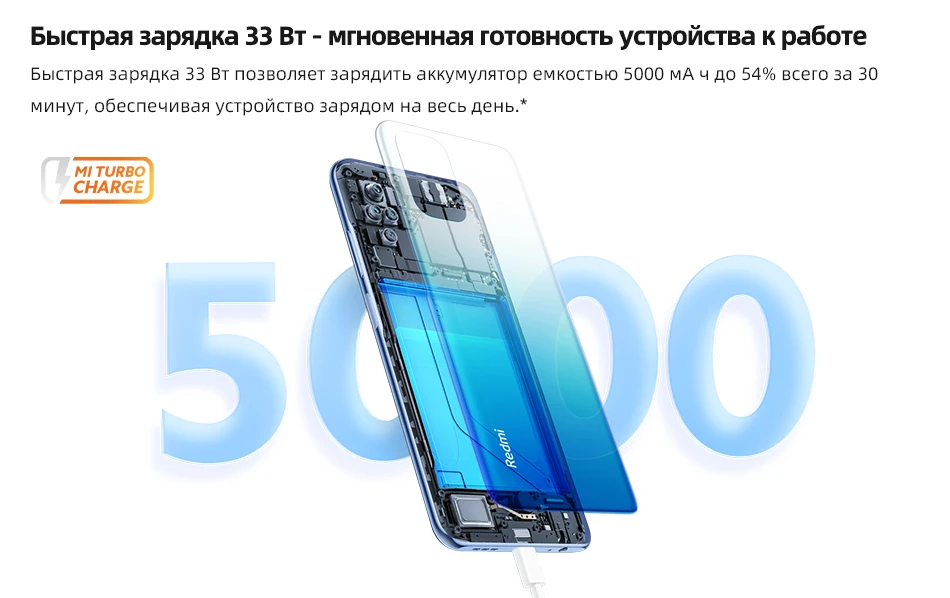 Аккумулятор -------- 5000 мАч (Typ), поддержка быстрой зарядки 33 Вт, зарядное устройство 33 Вт