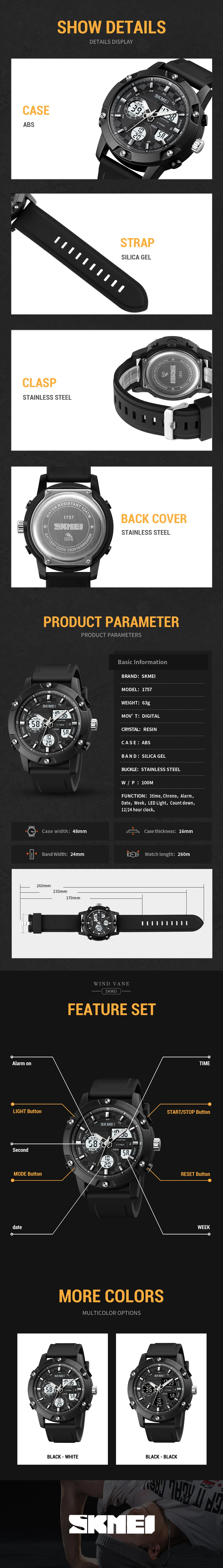 SKMEI 1757 спортивные цифровые армейские мужские часы светодиодсветодиодный Кварцевые часы электронные наручные часы водонепроницаемые 10Bar Relogio Masculino