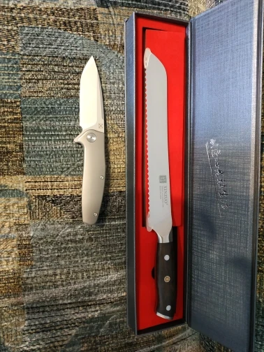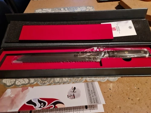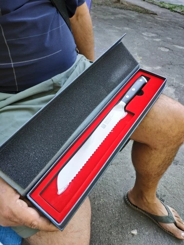 Доставка около двух недель. Упаковка супер. Внешняя коробка в «пупырке » , сама коробка - твёрдый красивый картон, можно в подарок. Внутри все супер, на фото все видно. Сам нож отличный, красивый, качественный продукт, даже немного изысков для красоты)) с нарезкой хлеба - проблем не возникло. Продавцу за доставку и продукт спасибо. Цена по рынку более чем хорошая.
