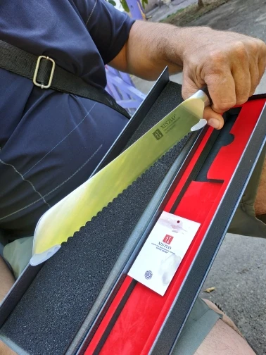 нож высшего качества, в подарочной упаковке,аж жалко резать, продавца и товар рекомендую