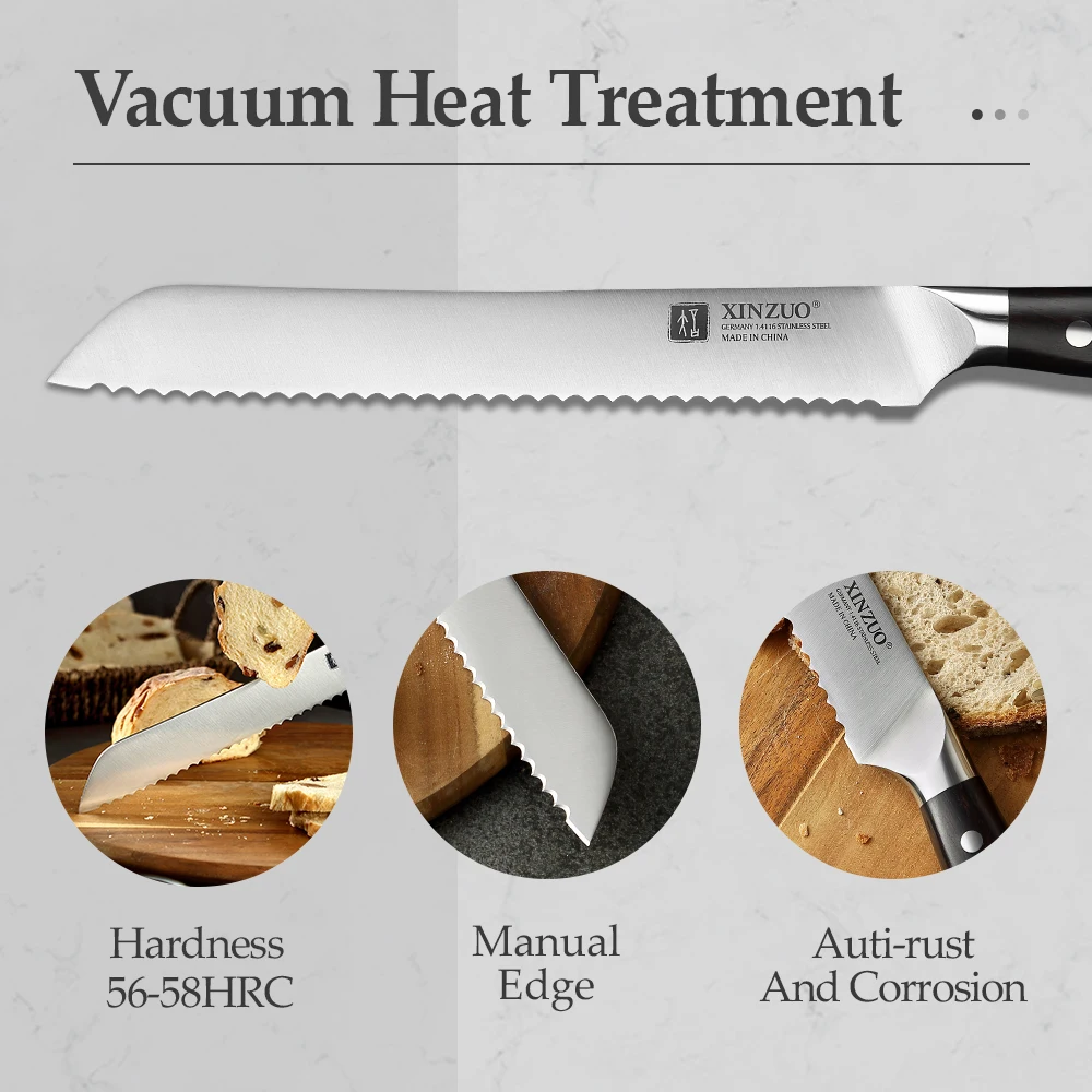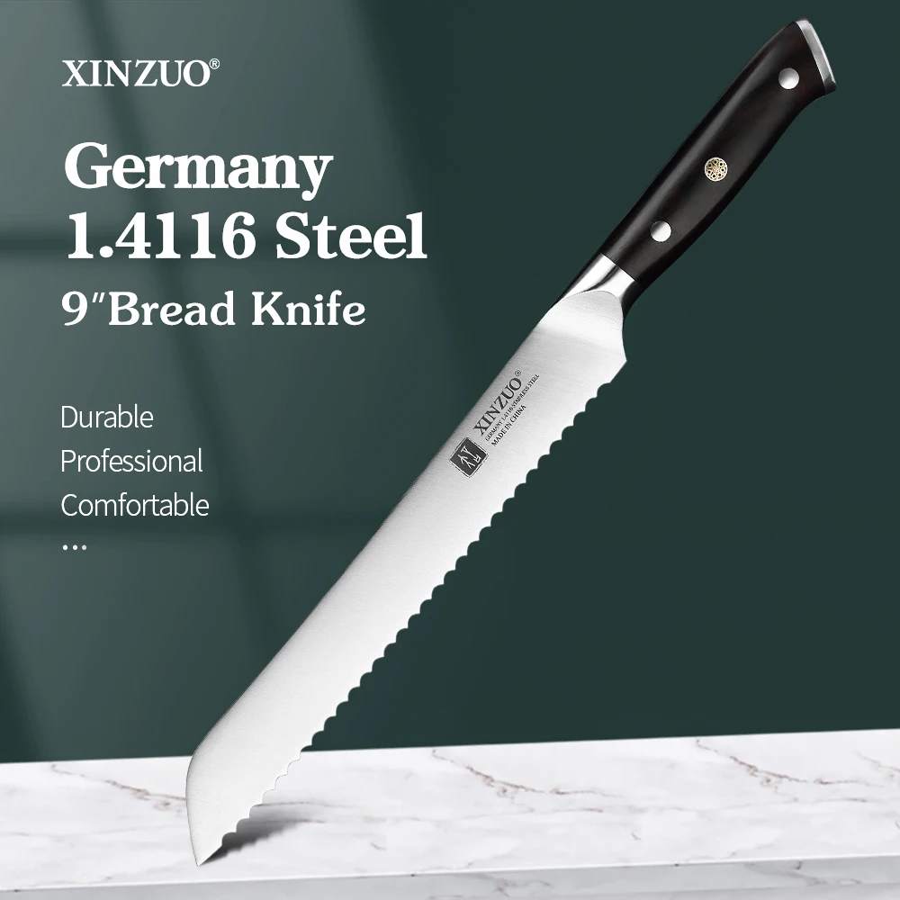Нож для хлеба XINZUO, резак из немецкой стали 1.4116, 9 дюймов, резак для резки торта, багета, кухонные инструменты из нержавеющей стали для выпечки