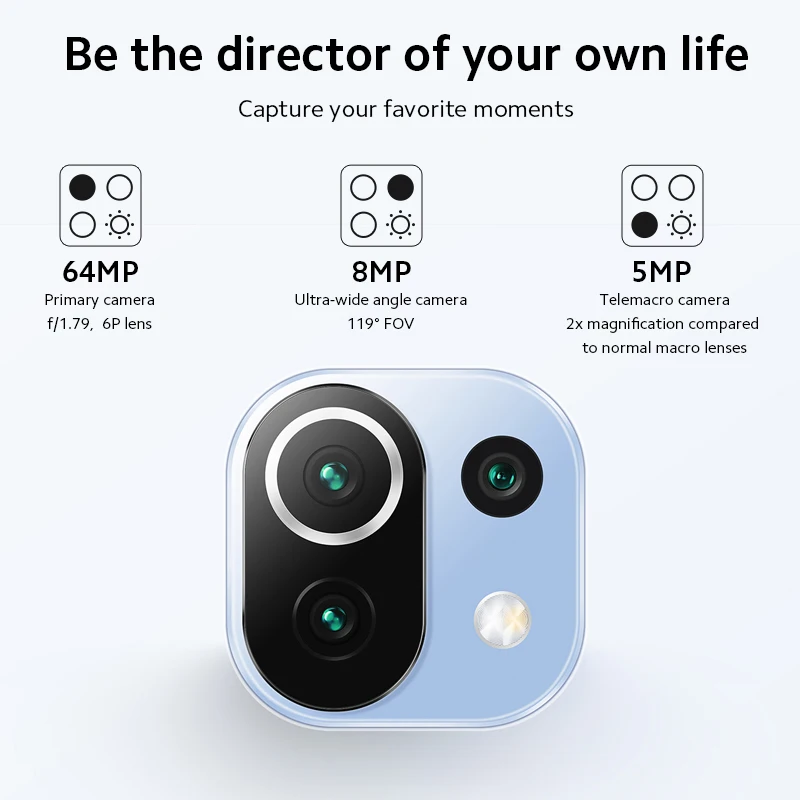Телефон Xiaomi Mi 11 Lite, 64 ГБ128 ГБ, Восьмиядерный процессор Snapdragon 732G, задняя камера 64 мп, экран 6,55 дюйма FHD + AMOLED, DotDisplay NFC