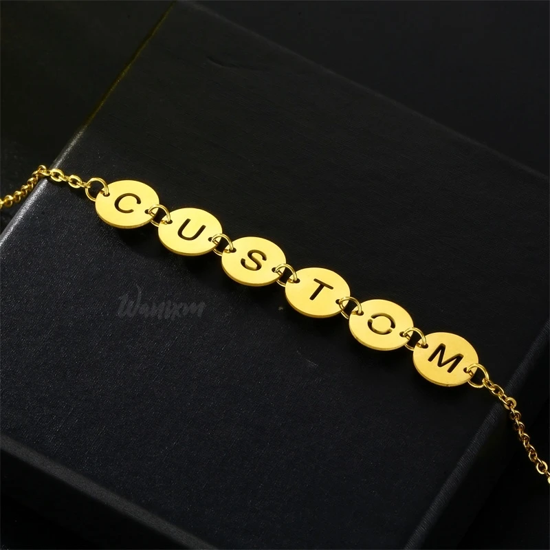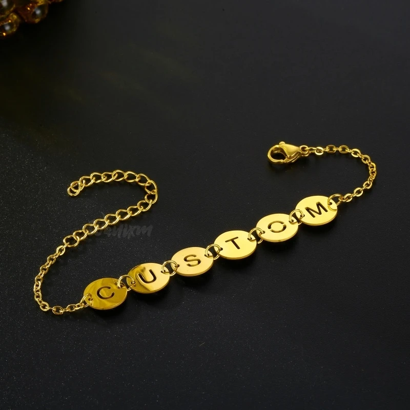 Пользовательских персонализированные имя браслет из нержавеющей стали золотые ручной работы по индивидуальному заказу цепи браслеты с буквами для женщин табличка ювелирные изделия