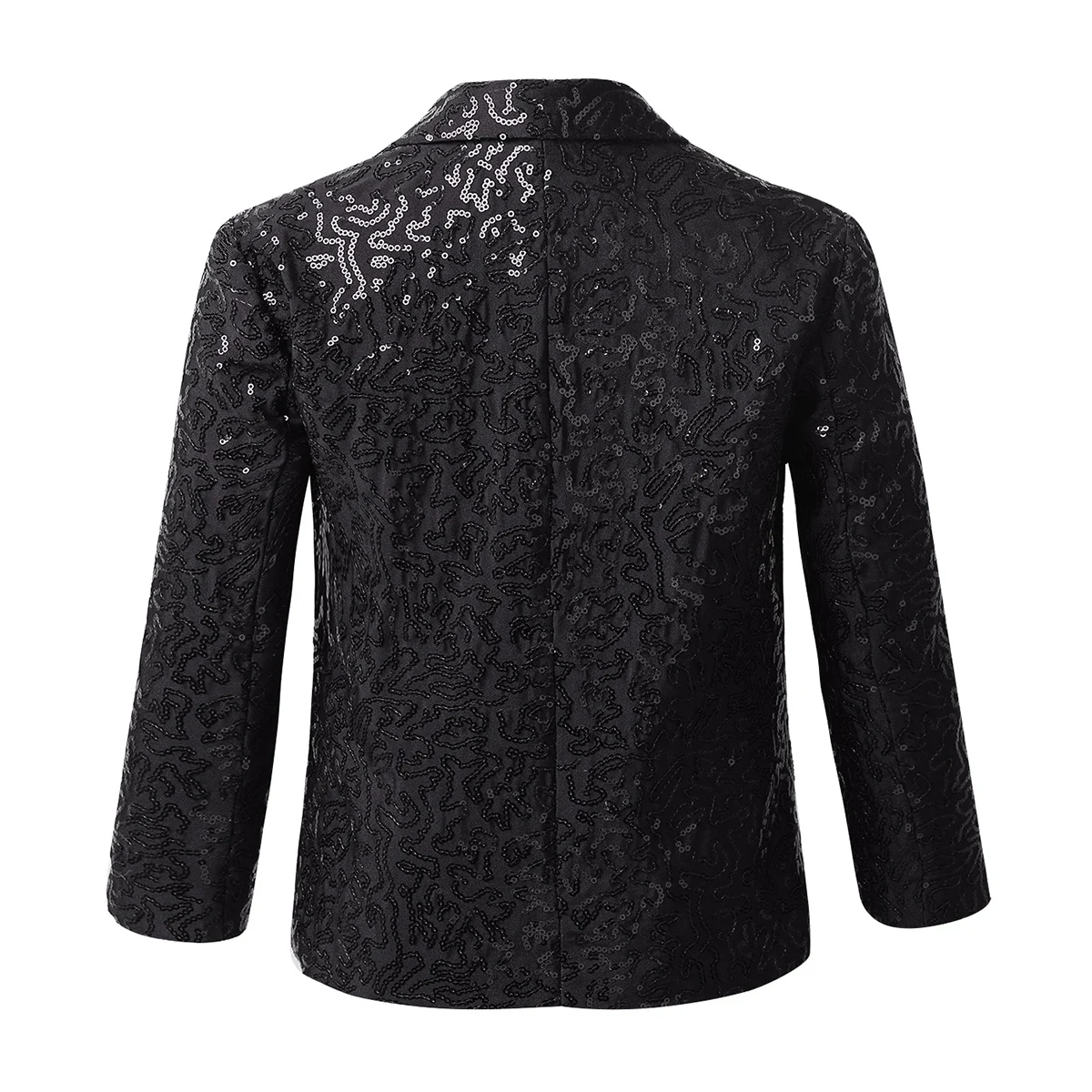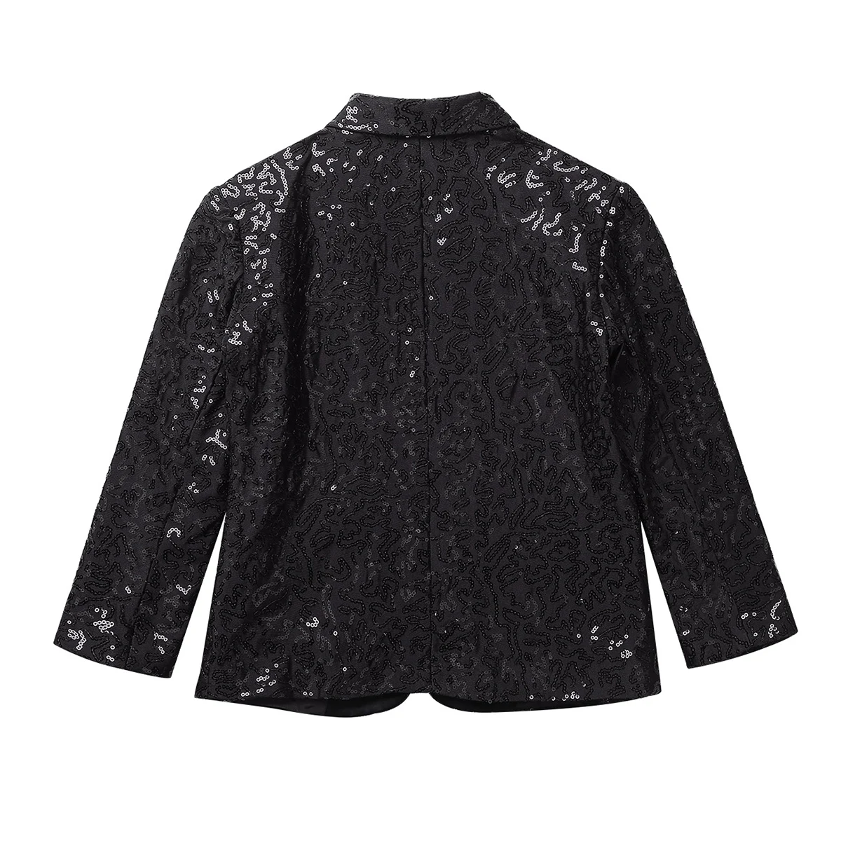Для мальчиков и для девочек с блестящими пайетками, костюм-смокинг блейзер с отворотами, на одной пуговице, куртка для детей, куртки для мальчиков церемониальная одежда костюм для свадьбы или торжественного случая, вечерние
