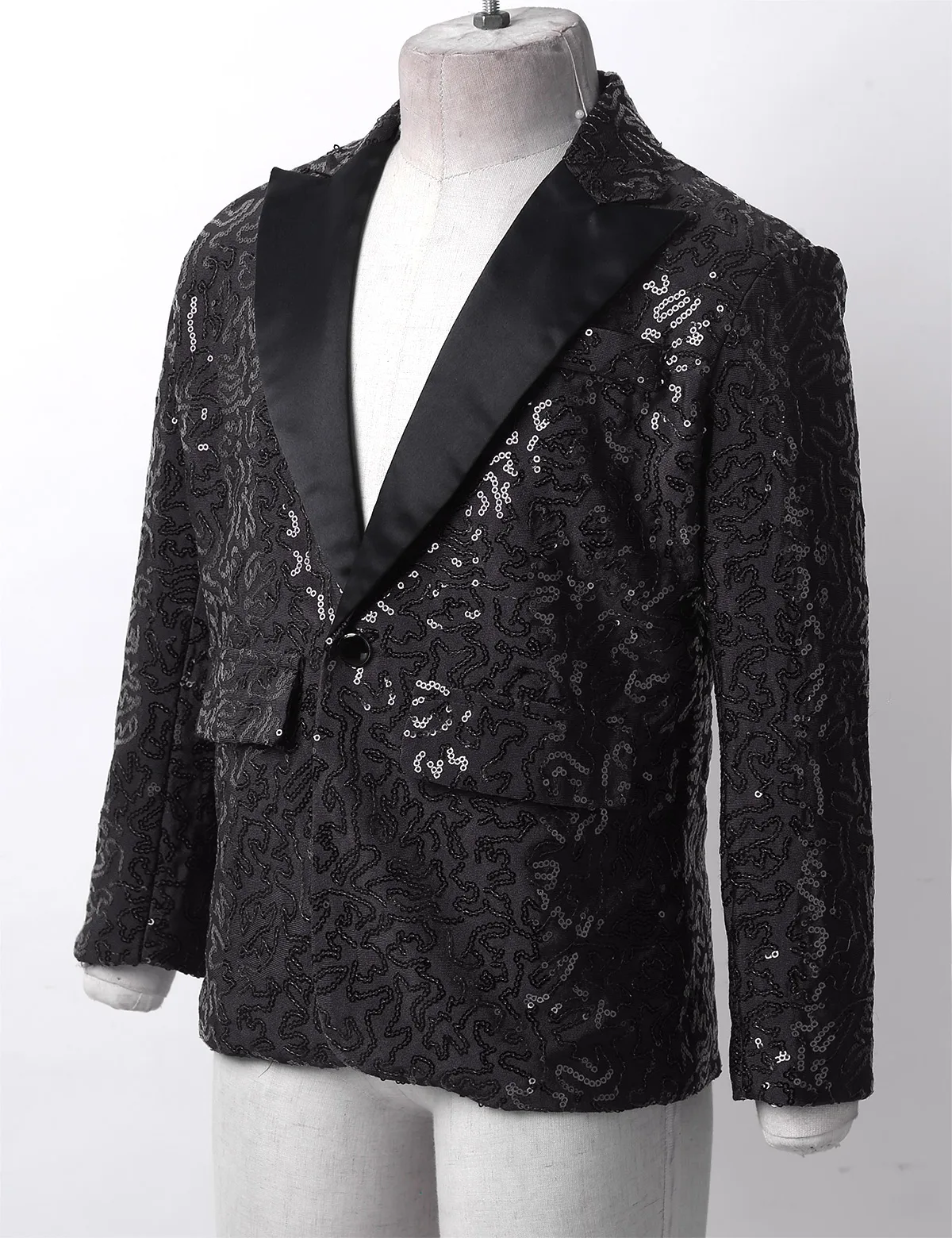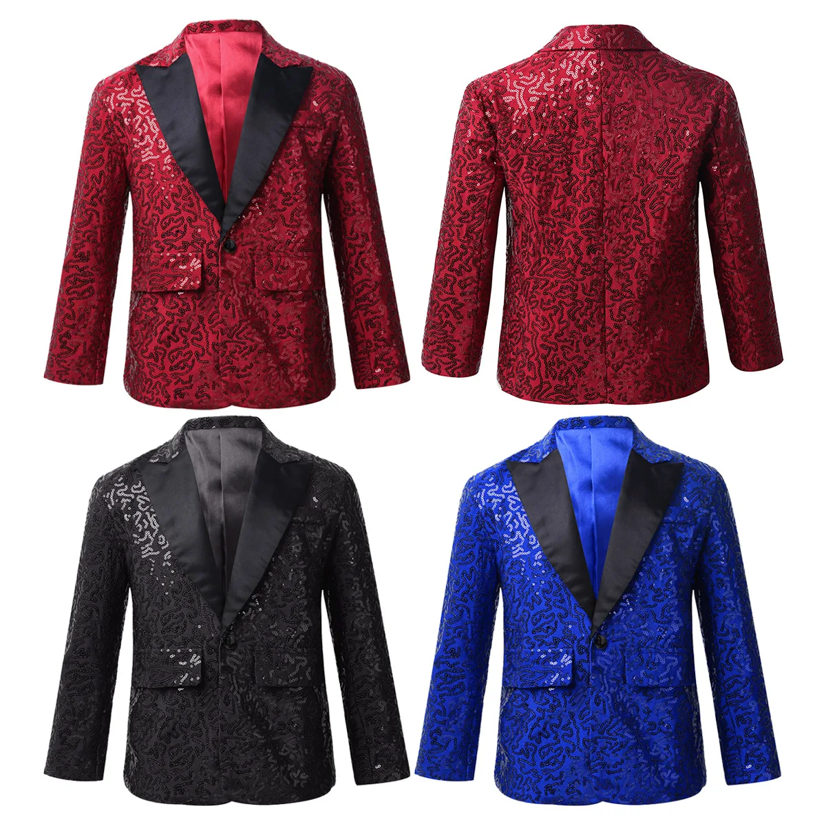 Блестящий смокинг с блестками для мальчиков, блейзер с отворотами, костюм на одной пуговице, пиджак, детская одежда для мальчиков, костюм для свадьбы, банкета, вечерние костюмы